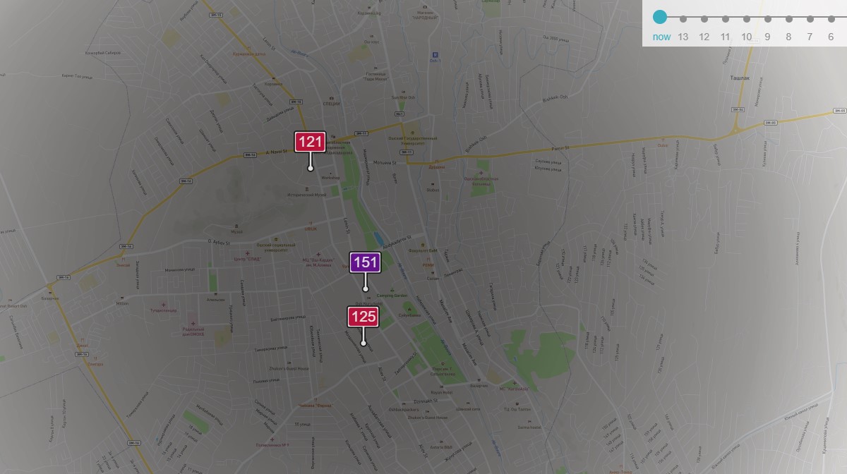 «Теперь не только Бишкек есть у нас на карте, но и город Ош. Как видите, ситуация с качеством воздуха такая, что пора вводить новый хештег #ОшСмог. Берегите себя, надевайте маски», — отметили в «МувГрин».