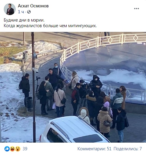 Сегодня он выложил на своей странице в Facebook фотографию с митинга родителей и подписал: «Будние дни в мэрии. Когда журналистов больше, чем митингующих».