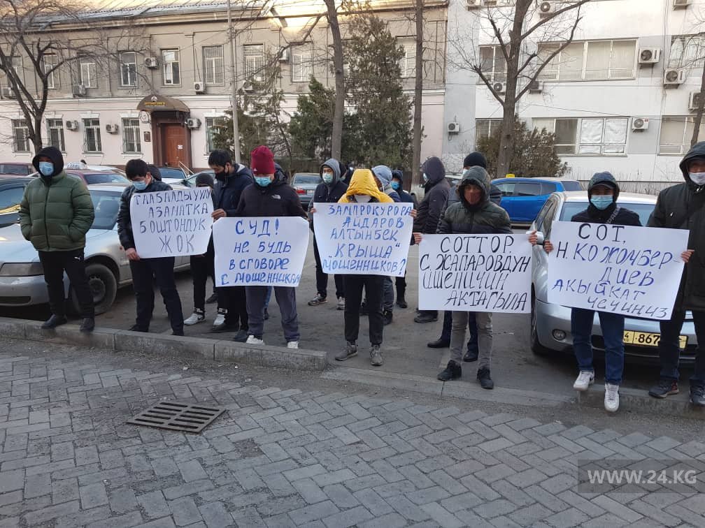 В Бишкеке к зданию Городского суда на митинг вышли пострадавшие от мошенничества. Они опасаются, что суд может изменить меру пресечения проходящему по их делу подозреваемому Таабылды уулу Азамату и выпустить его из СИЗО.
