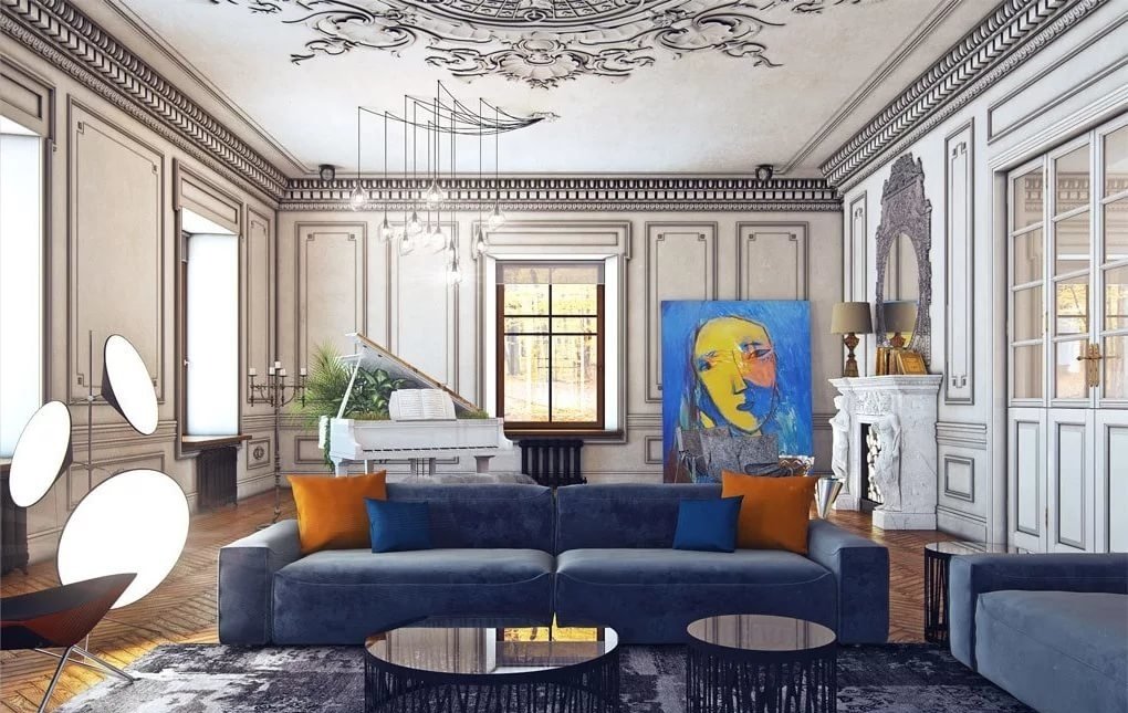 Отличной альтернативой тяжелой классике, а главное, жизнеспособной и не требующей исключительного ухода и бесконечной реставрации сусального золота на лепнине, являются классика американская, облегченная парижская или колониальная, а также эклектика: совмещение классики с современным стилем.