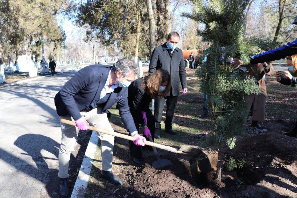 Первым делом организация обратила внимание на состояние парковой зоны в Кара-Балте. Здесь решили улучшить инфраструктуру. Проект включал в себя посадку 200 хвойных деревьев, 300 лиственных, 1 тысячи кустов и подготовку 5 тысяч саженцев в теплице к весенней посадке.