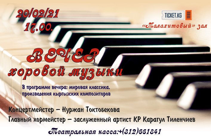 В программе мировая классика, произведения кыргызских композиторов. Концертмейстер — Нуржан Токтобекова, главный хормейстер — Карагул Тиленчиев.