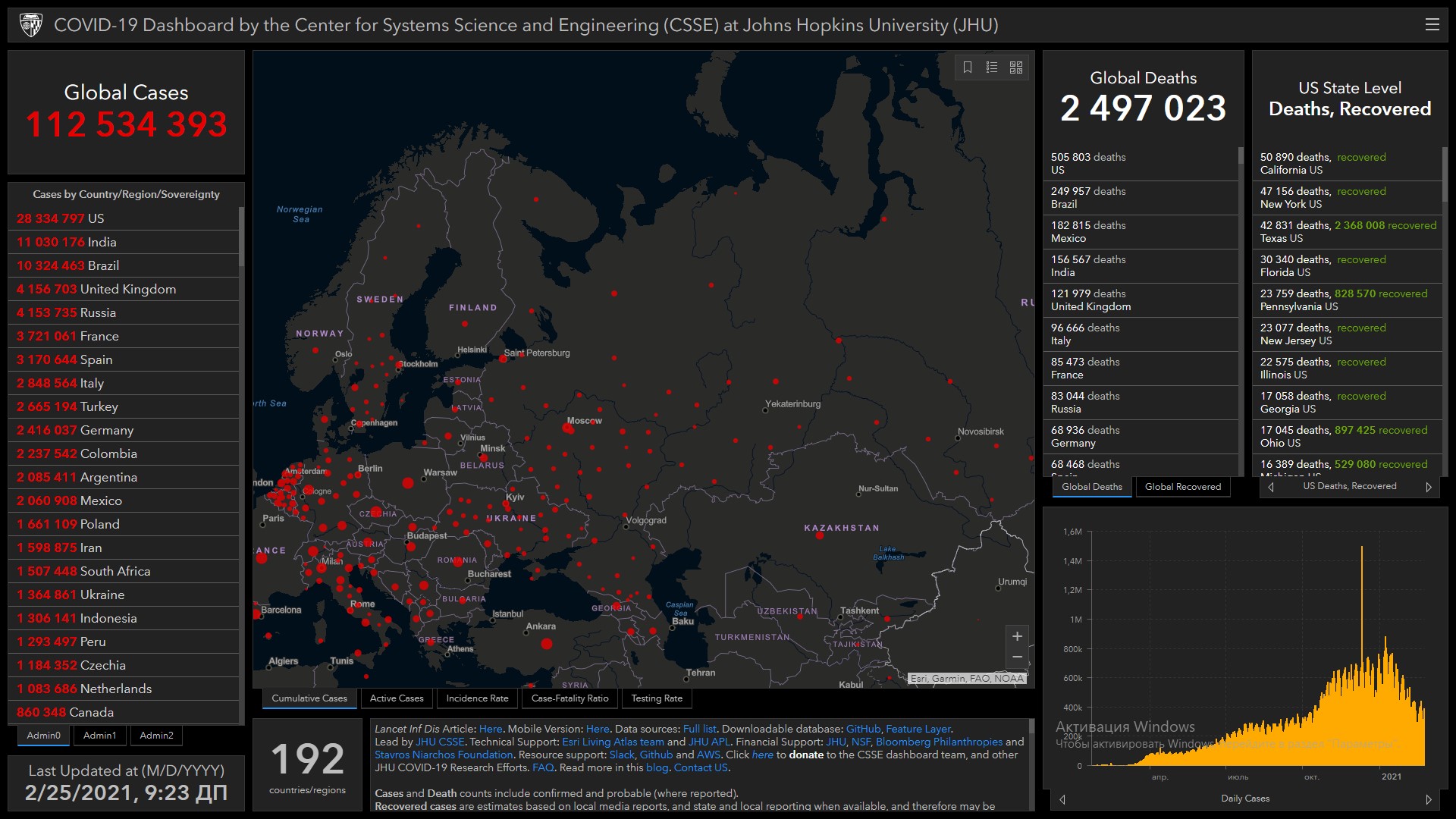 COVID-19 в мире. Заразились более 112,5 миллиона, умерли более 2,4 миллиона