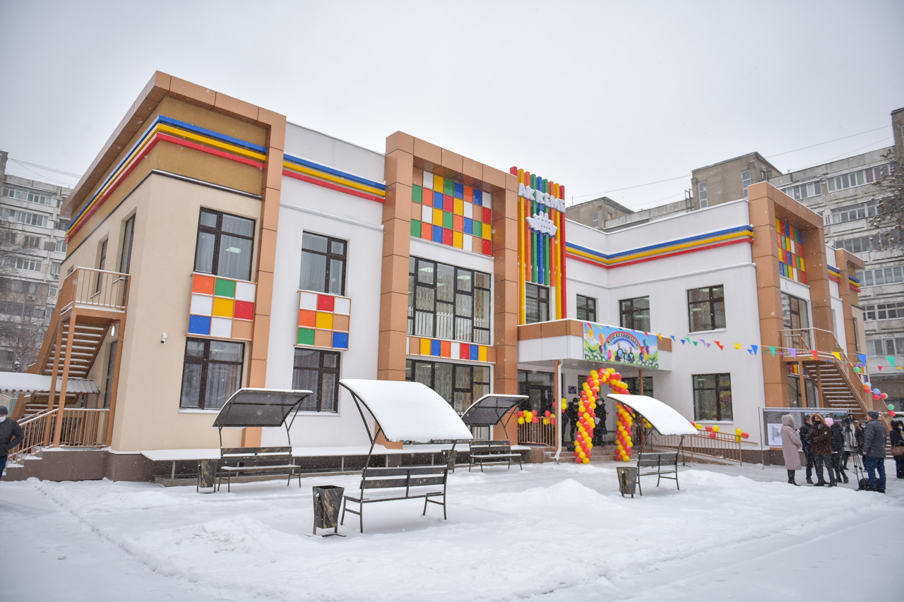В Бишкеке открылся новый детский сад на улице Тыныстанова на месте сгоревшей во время апрельских событий 2010 года налоговой инспекции Первомайского района.
