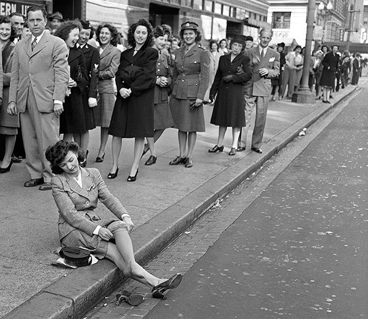 Фото Bettmann/CORBIS. Распродажа нейлоновых чулок в Вашингтоне, 1945 год