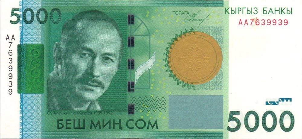 На лицевой стороне изображен портрет народного артиста СССР, народного художника Киргизской ССР, мастера спорта Суйменкула Чокморова.