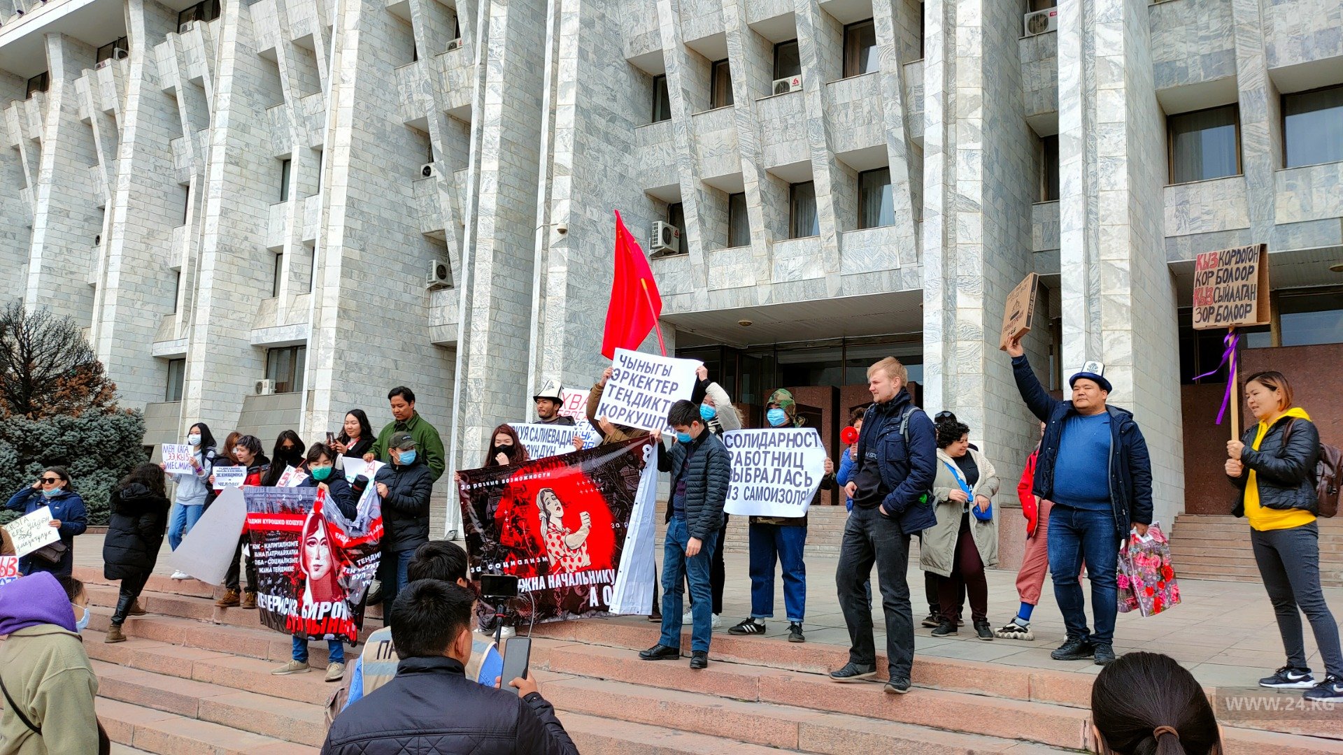 В Бишкеке проходит мирный марш за права женщин. Около 200 человек собрались у главного входа в «Белый дом».