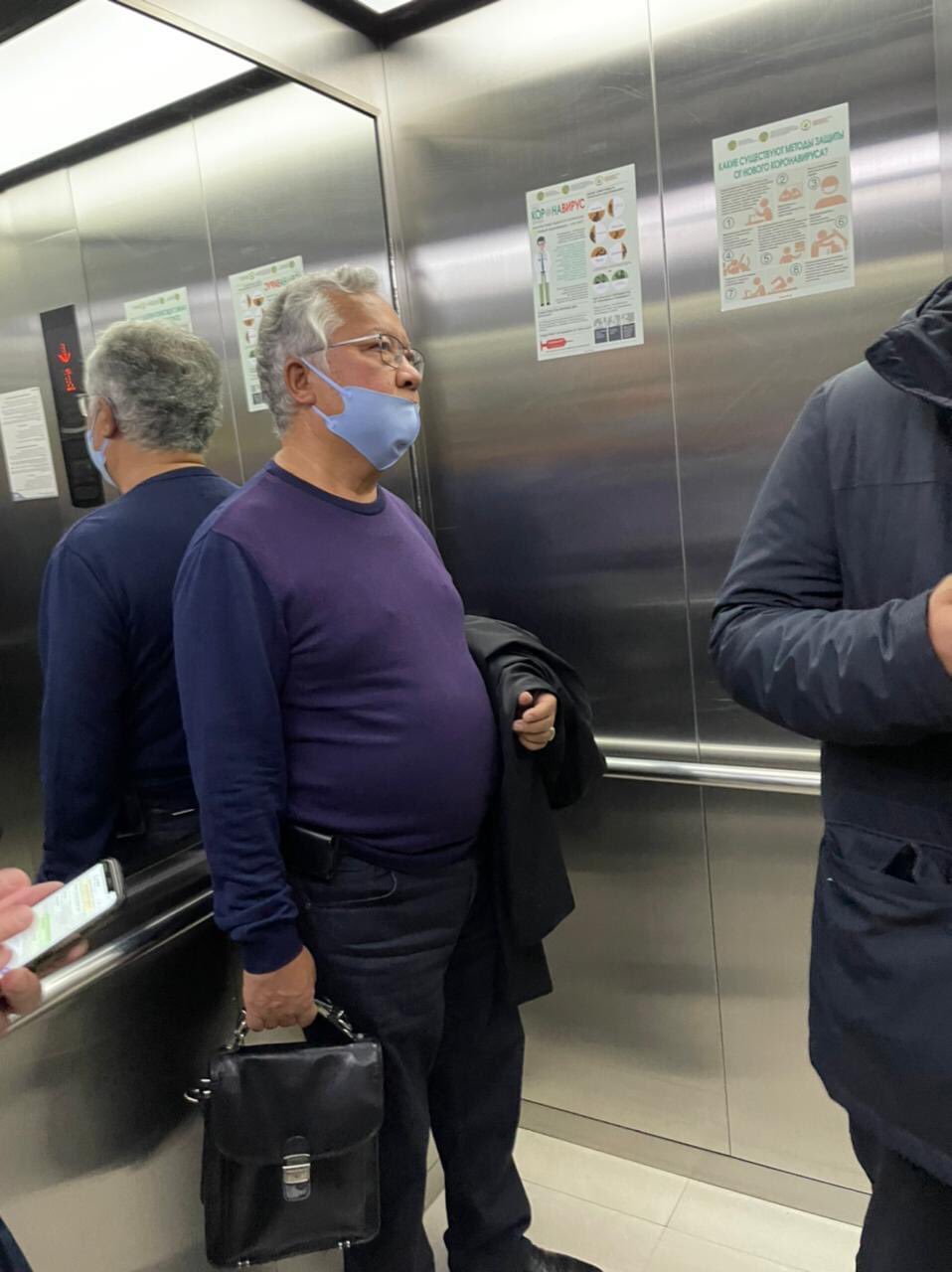 Фото из соцсетей. Жаныш Бакиев в лифте в Алматы