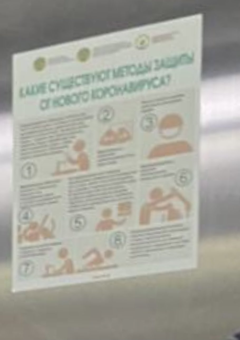 В кабине лифта можно также увидеть плакаты с призывом соблюдать меры предосторожности в связи с распространением коронавируса. На объявлениях не очень отчетливо виден герб, предположительно, Республики Казахстан. Пользователи соцсетей нашли аналогичный плакат и опубликовали для сравнения. Там действительно размещен герб Казахстана и логотип Национального центра общественного здравоохранения РК.