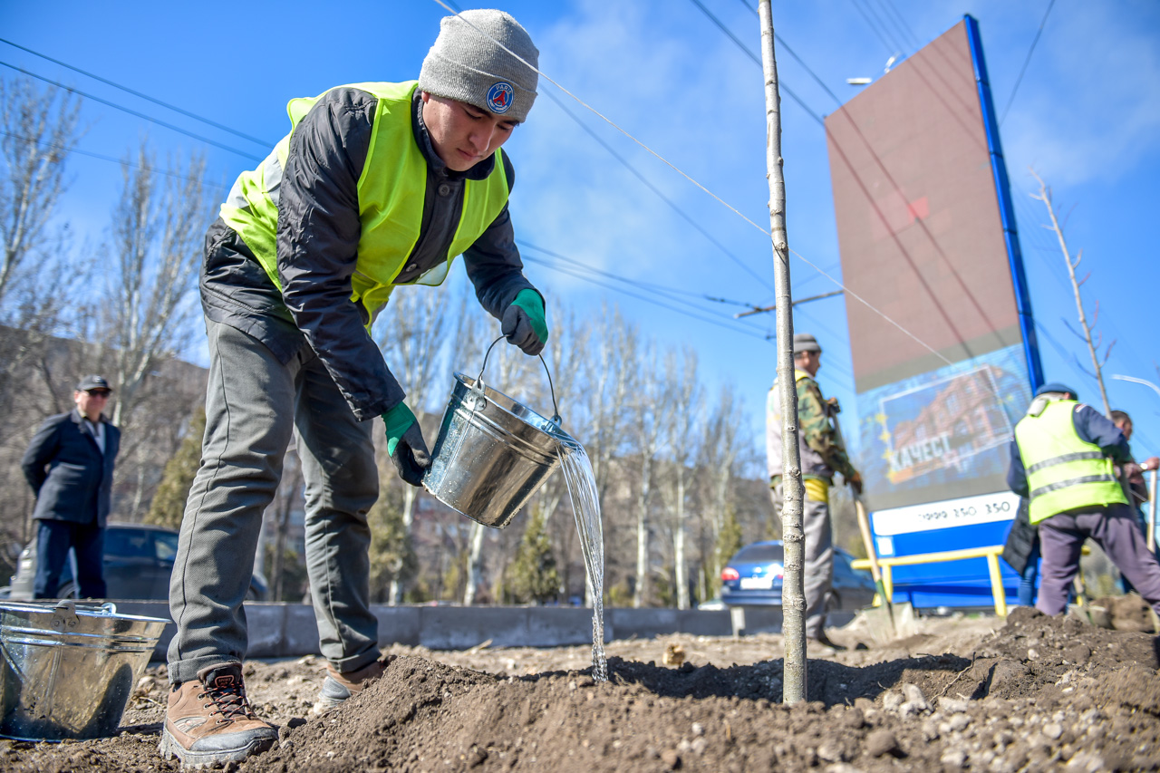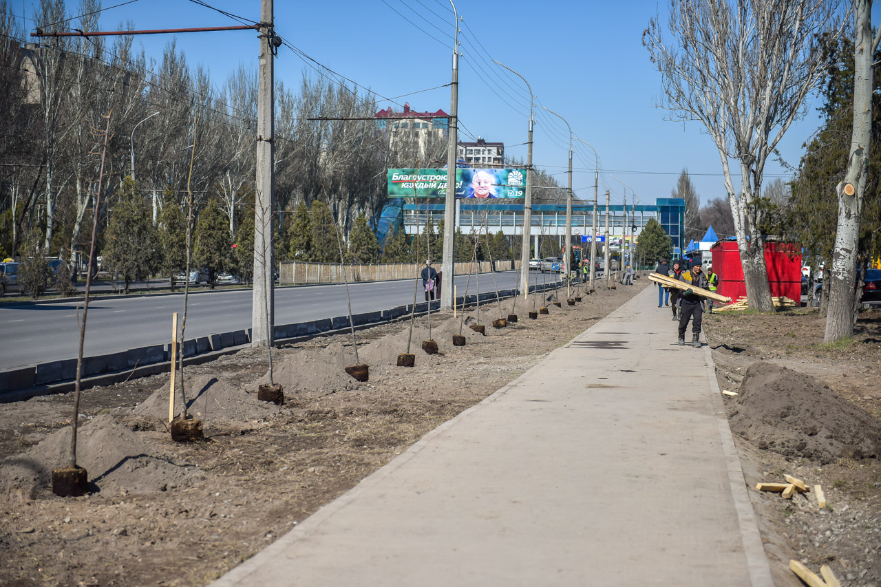 По ее данным, деревья сегодня посадили и. о. мэра Бишкека Бактыбек Кудайбергенов, вице-мэр Жамалбек Ырсалиев и президент Международной ассоциации предпринимателей Акбар Маразыков на пересечении улиц 7 Апреля и Менделеева. Им помогали сотрудники Бишкекзеленхоза, которые заранее подготовили лунки.
