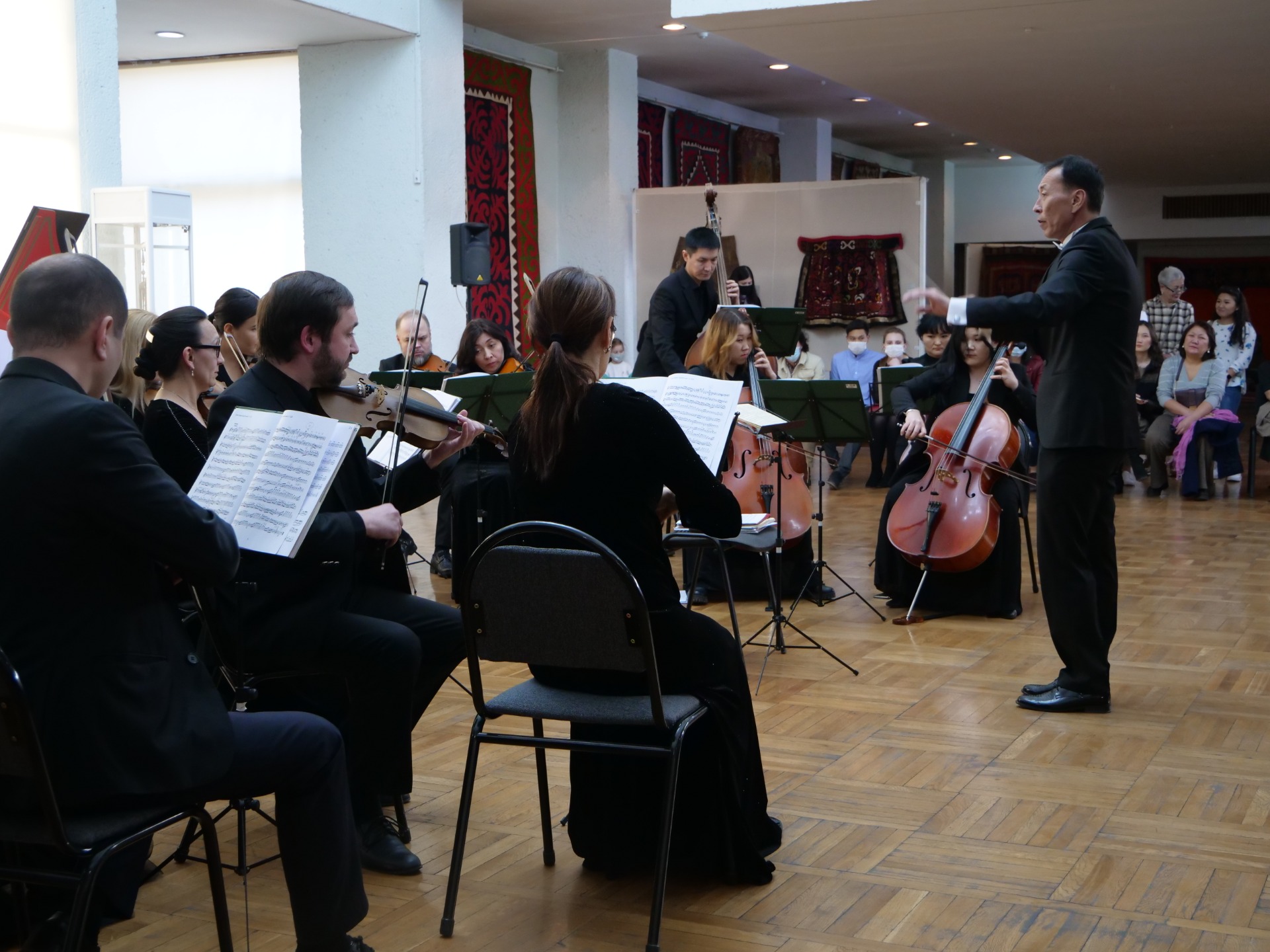 В стенах Кыргызского национального музея изобразительных искусств имени Гапара Айтиева звучали музыкальные шедевры. Перед горожанами выступил Чуйский камерный оркестр под управлением главного дирижера и народного арстиста КР Рахата Осмоналиева.