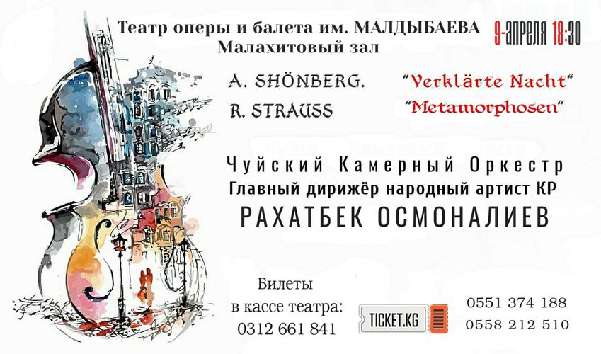 В программе «Просветленная ночь» Арнольда Шенберга и «Метаморфозы» Рихарда Штрауса. Главный дирижер — Народный артист КР Рахатбек Осмоналиев.