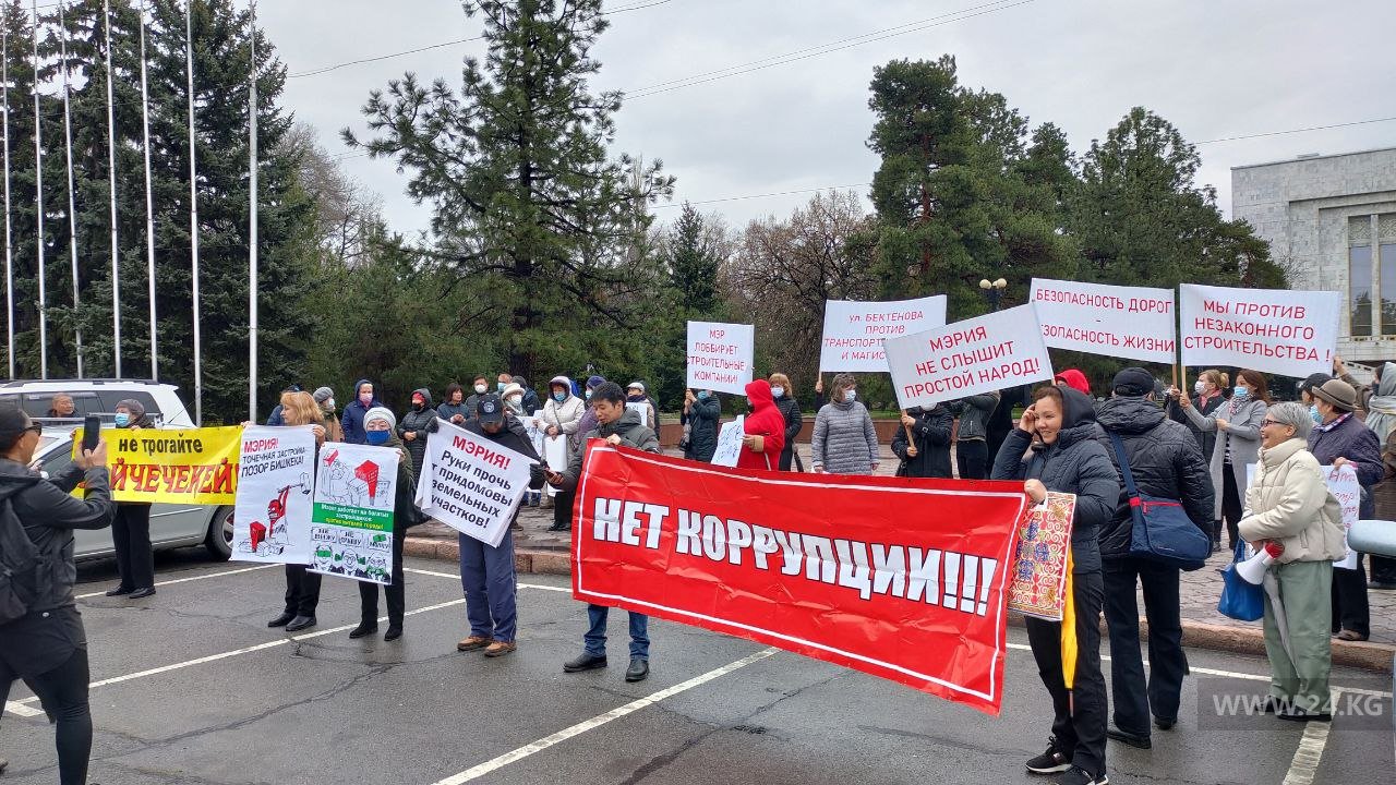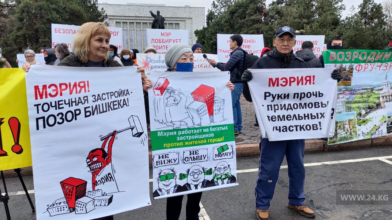 Незаконная застройка Бишкека. Возле Дома правительства митингуют жители столицы