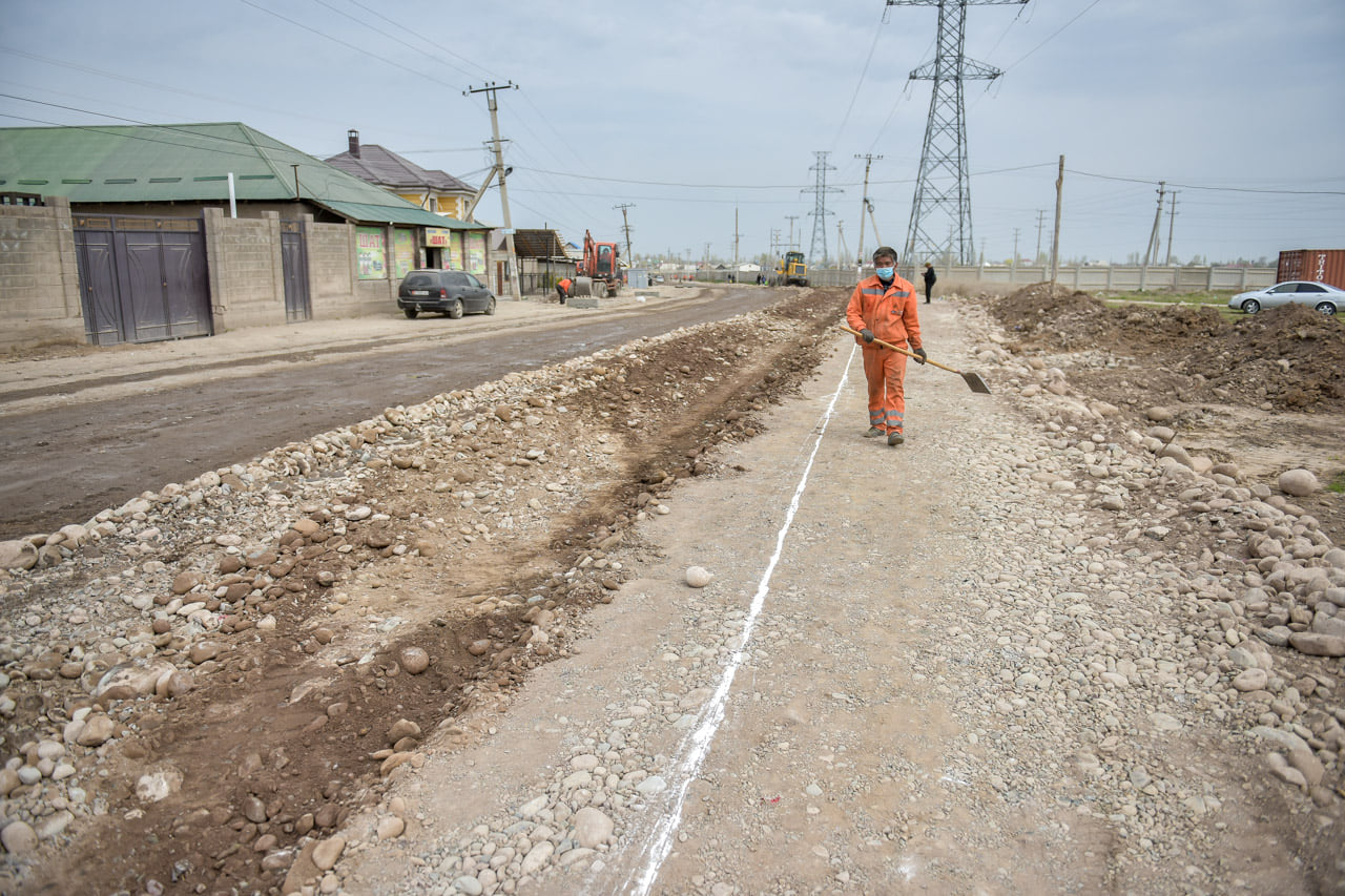 И. о. мэра проверил работу на улице Жунусалиева от улицы Абдрахманова до Масалиева в жилмассиве «Арча-Бешик». На участке проложены перспективные и ирригационные трубы, устанавливаются ирригационные лотки и дорожные бордюры, ведутся земляные работы под проезжую и тротуарную части.