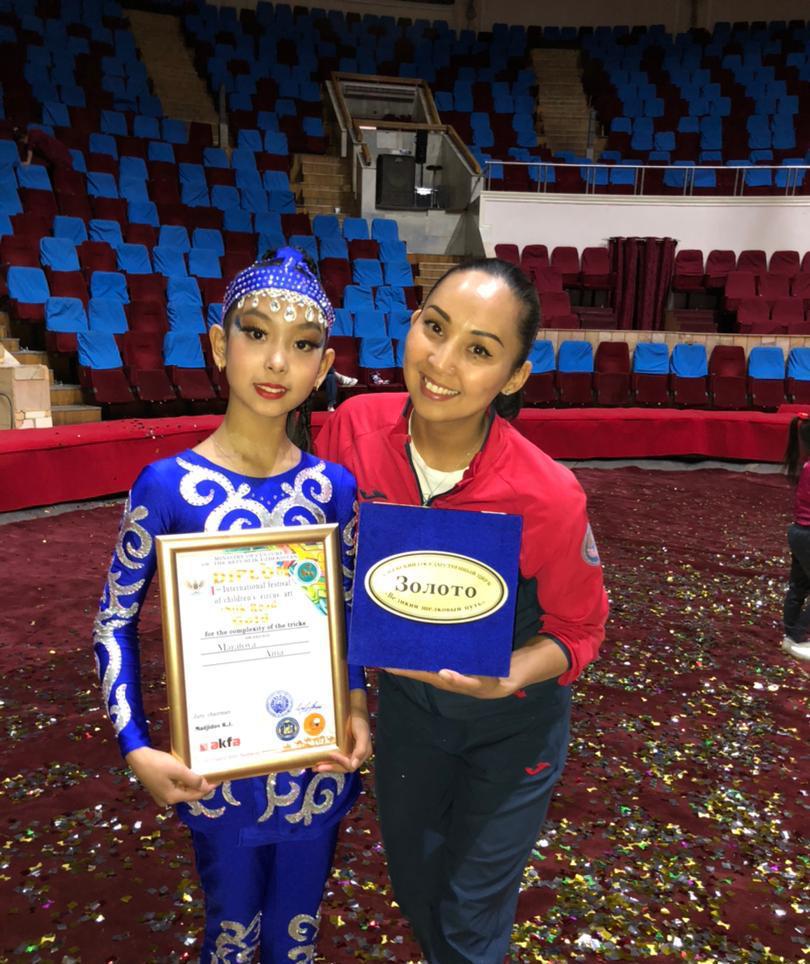 «В фестивале участвовали циркачи из России, Китая, Украины, Казахстана, Узбекистана и Кыргызстана. Аине Маратовой удалось завоевать золото. Девочке 11 лет, это был ее дебют. Конкурс проходил в цирке Ташкента», — рассказала Аида Акматова.