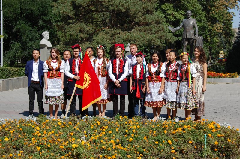 По его словам, в акции ожидалось участие около 40 человек – представителей пяти диаспор – турецкой, уйгурской, польской, русской и татарской. Однако присутствовало всего чуть более десяти человек. Участники в национальной одежде исполнили гимн Кыргызстана.