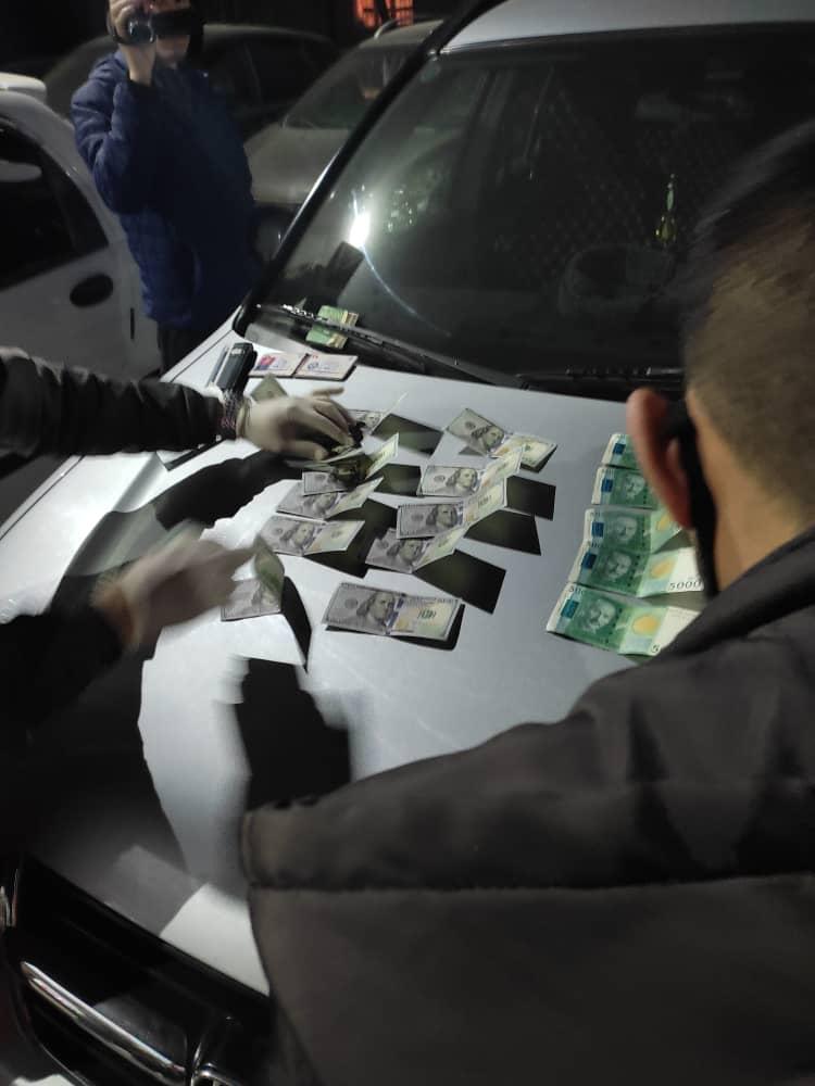 «19 апреля подозреваемые были задержаны сотрудниками службы внутренних расследований МВД на территории Баткенской области. При получении взятки в размере $3 тысяч 800 и 340 тысяч сомов с поличным задержаны старший оперуполномоченный по особо важным делам УМОО СБНОН МВД КР подполковник милиции А. Н. и гражданское лицо Т. Б. При проведении дальнейших специальных следственных действий в Оше был задержан оперуполномоченный МРУ СКМ МВД капитан милиции А. А.», — сообщили в пресс-службе.