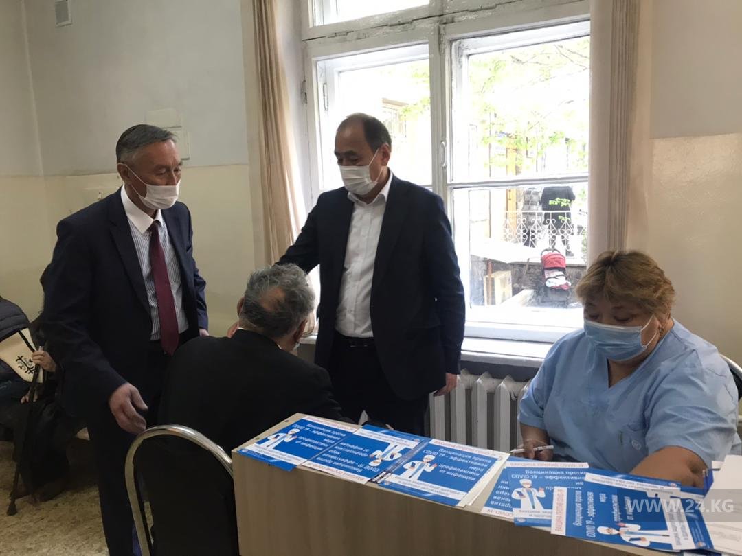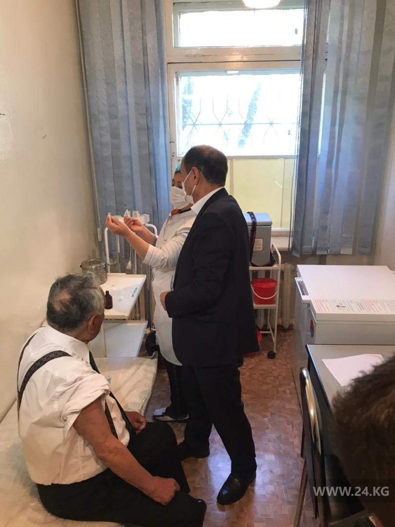 Во время введения первой дозы российской вакцины присутствовал министр здравоохранения Алымкадыр Бейшеналиев.