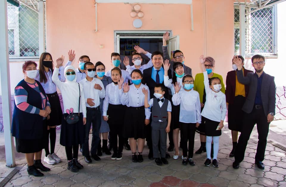 В акции принял участие Алмазбек Бейшеналиев. Он посетил Специальную общеобразовательную школу-интернат для слепых и слабовидящих детей и пообщался с коллективом учебного заведения.