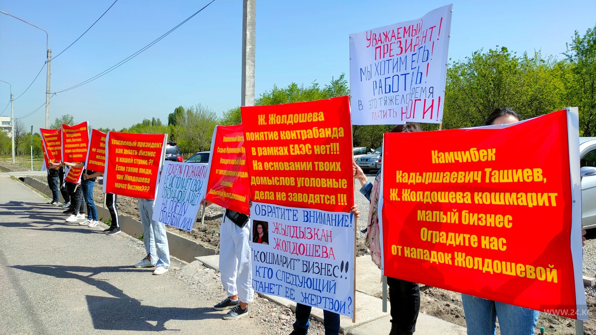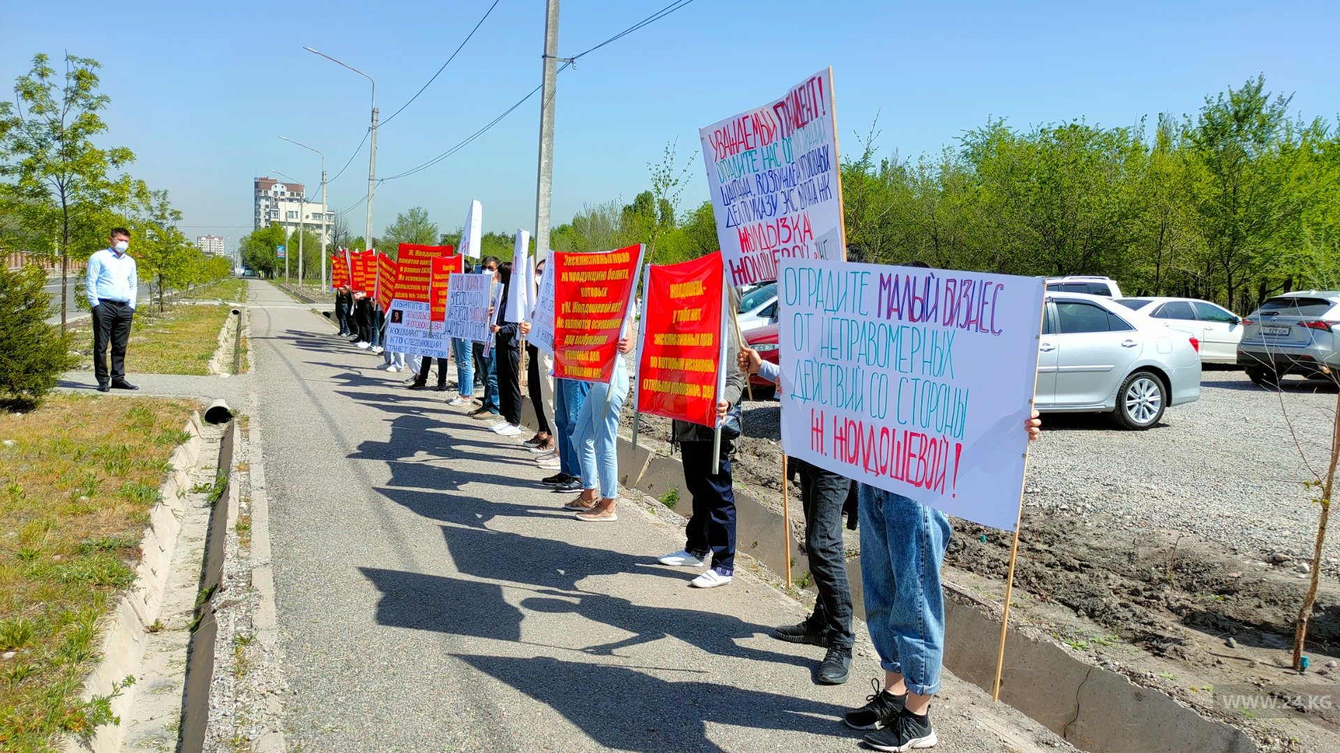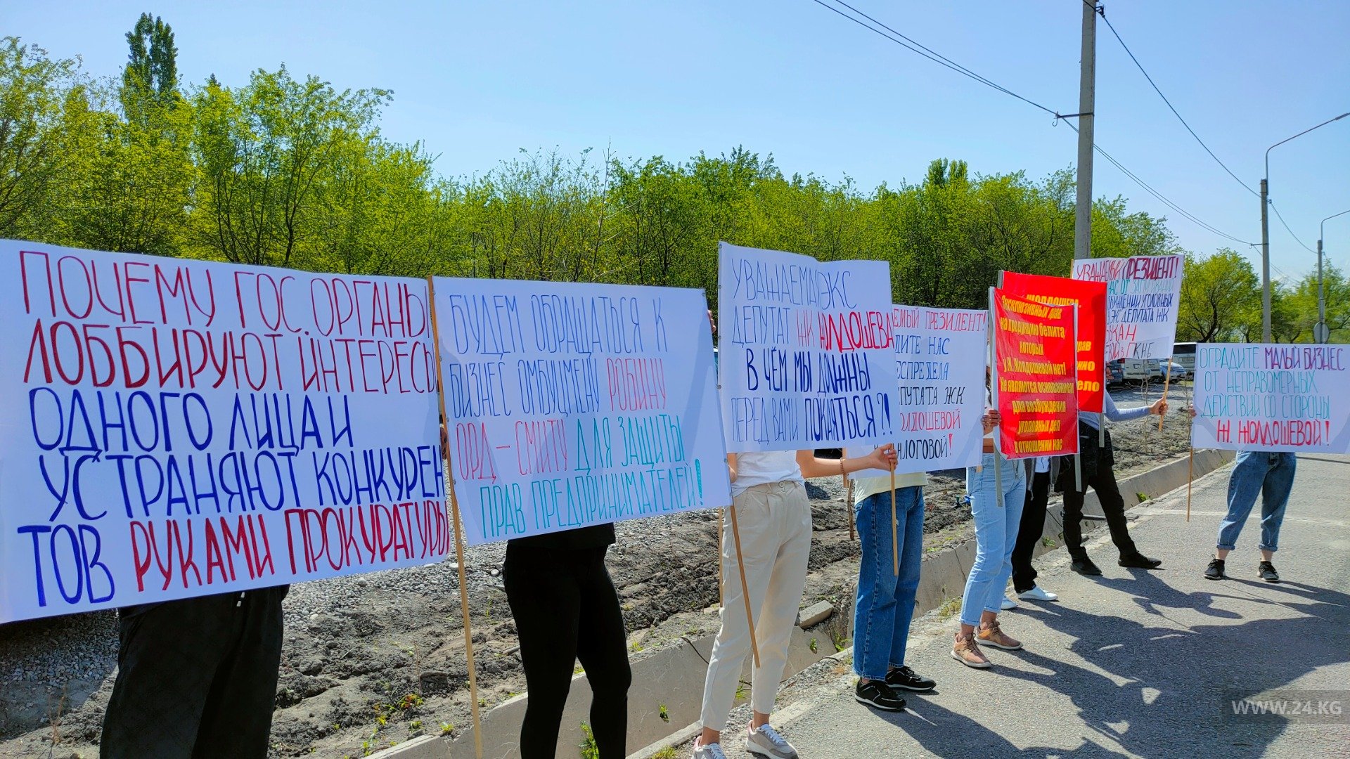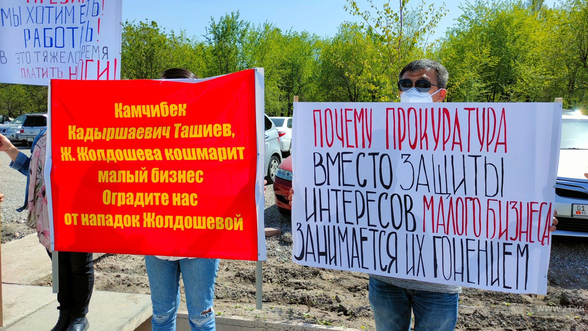 В Бишкеке возле здания Генпрокуратуры митингуют более 20 предпринимателей. Они заявляют, что бывший депутат Жогорку Кенеша Жылдызкан Жолдошова препятствует ведению их бизнеса.
