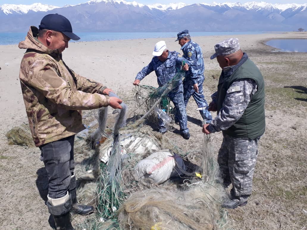 Напомним, что озеро буквально усеяно сотнями километров рыболовных сетей, рассказал ранее редакции председатель Общественного фонда «Экологический надзор» Султанмурат Абдыисаев. Он пожаловался, что ответственные за сохранение фауны озера чиновники проводят рейды для галочки, собирая старые сети, но не трогая самих браконьеров.
