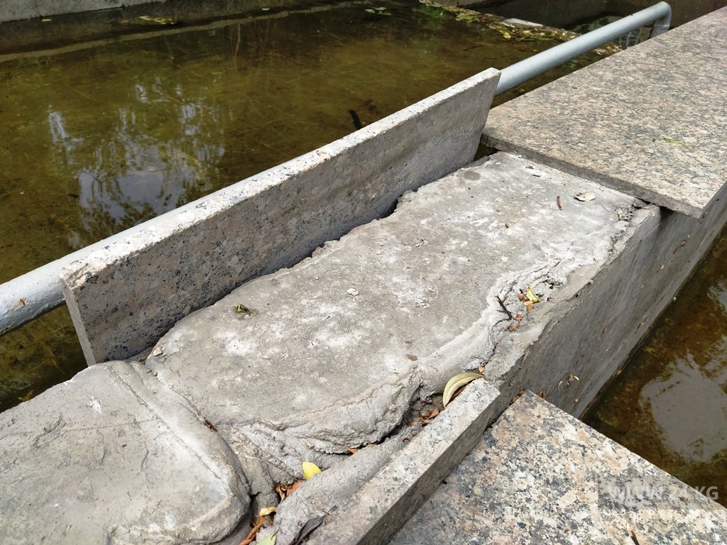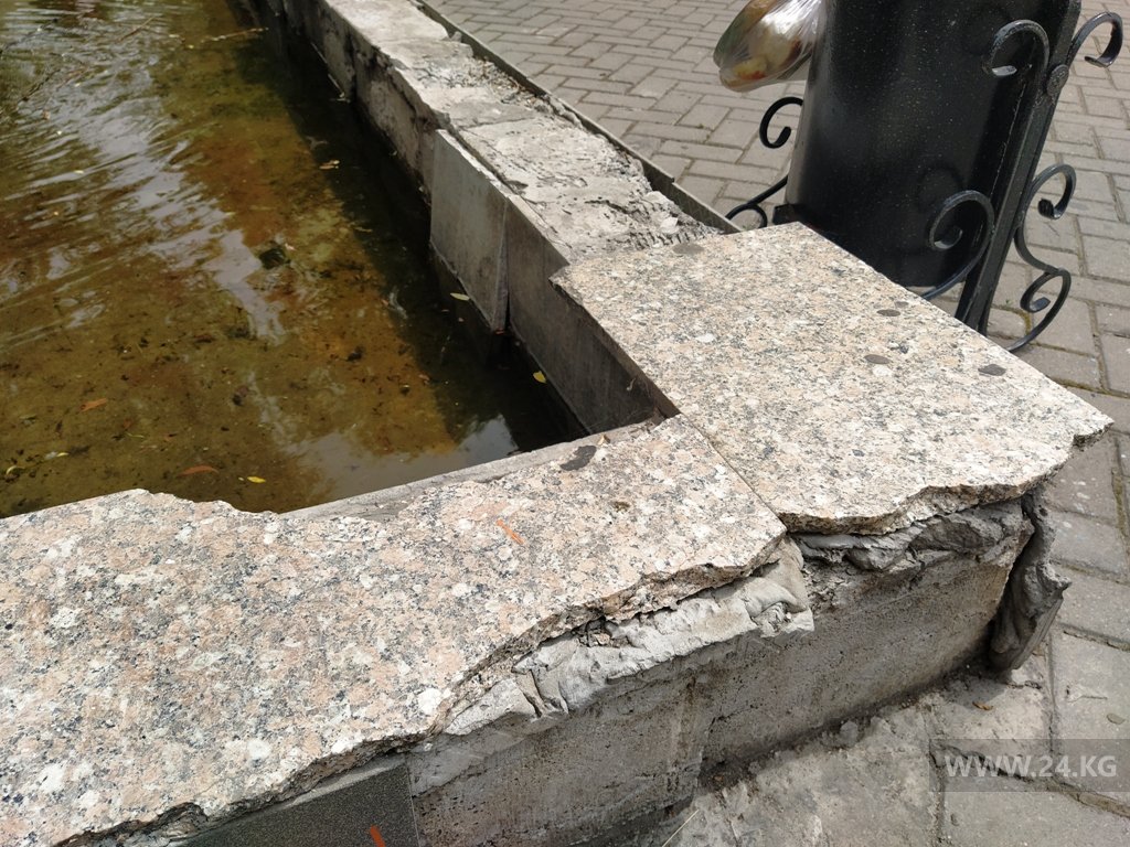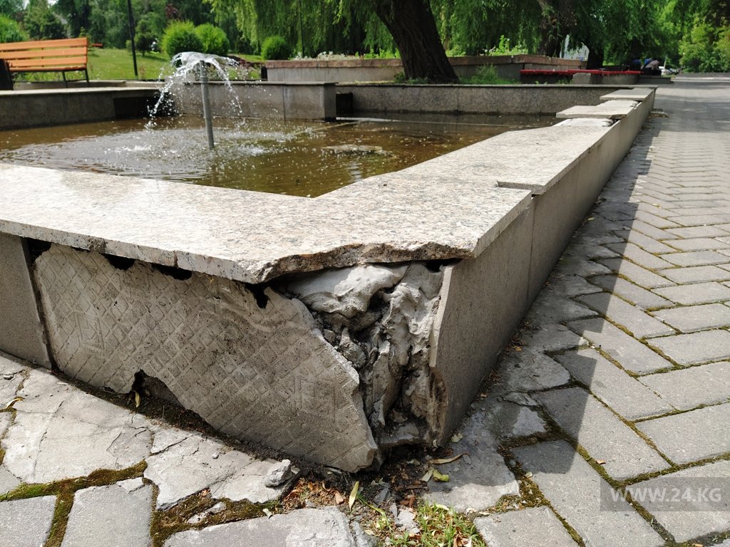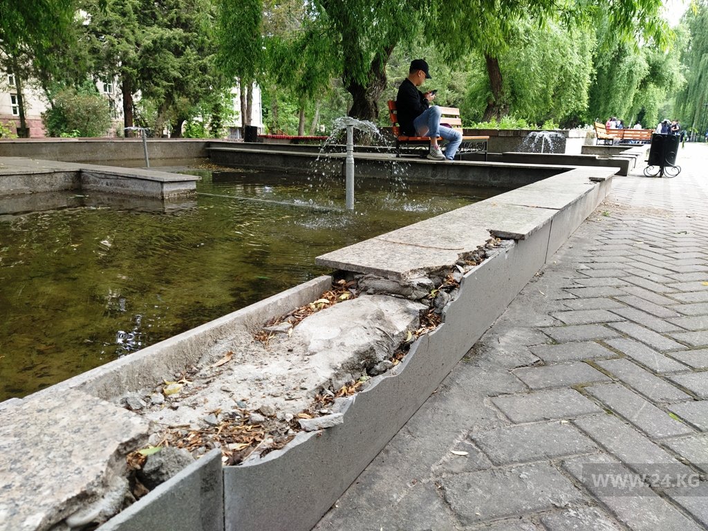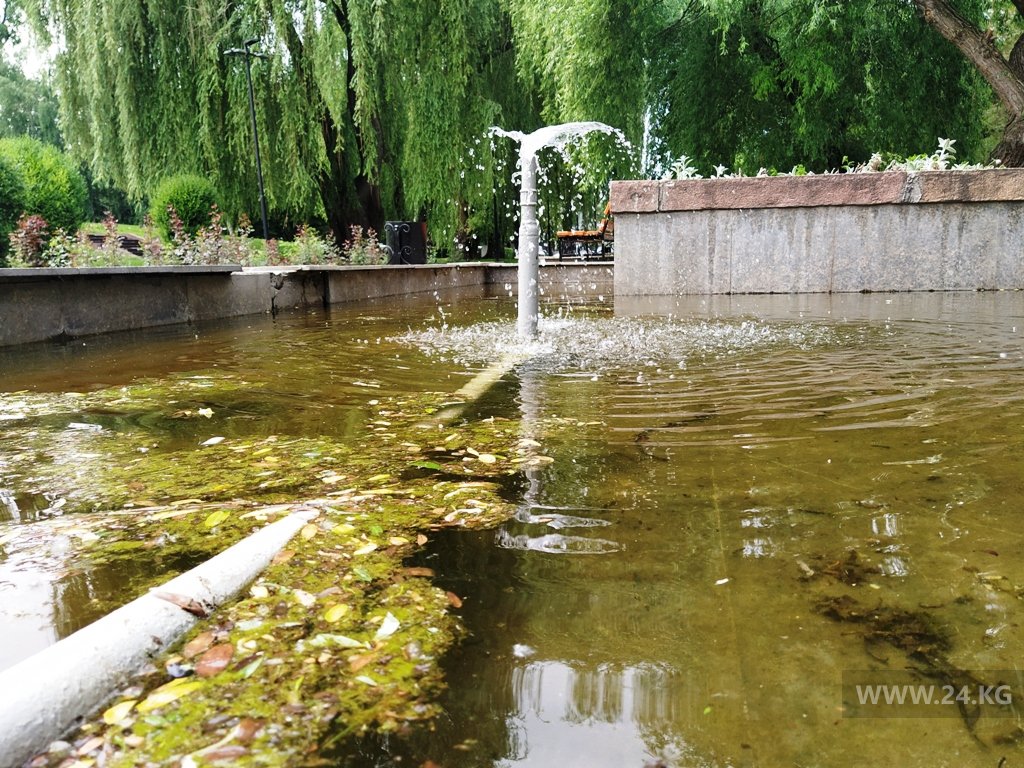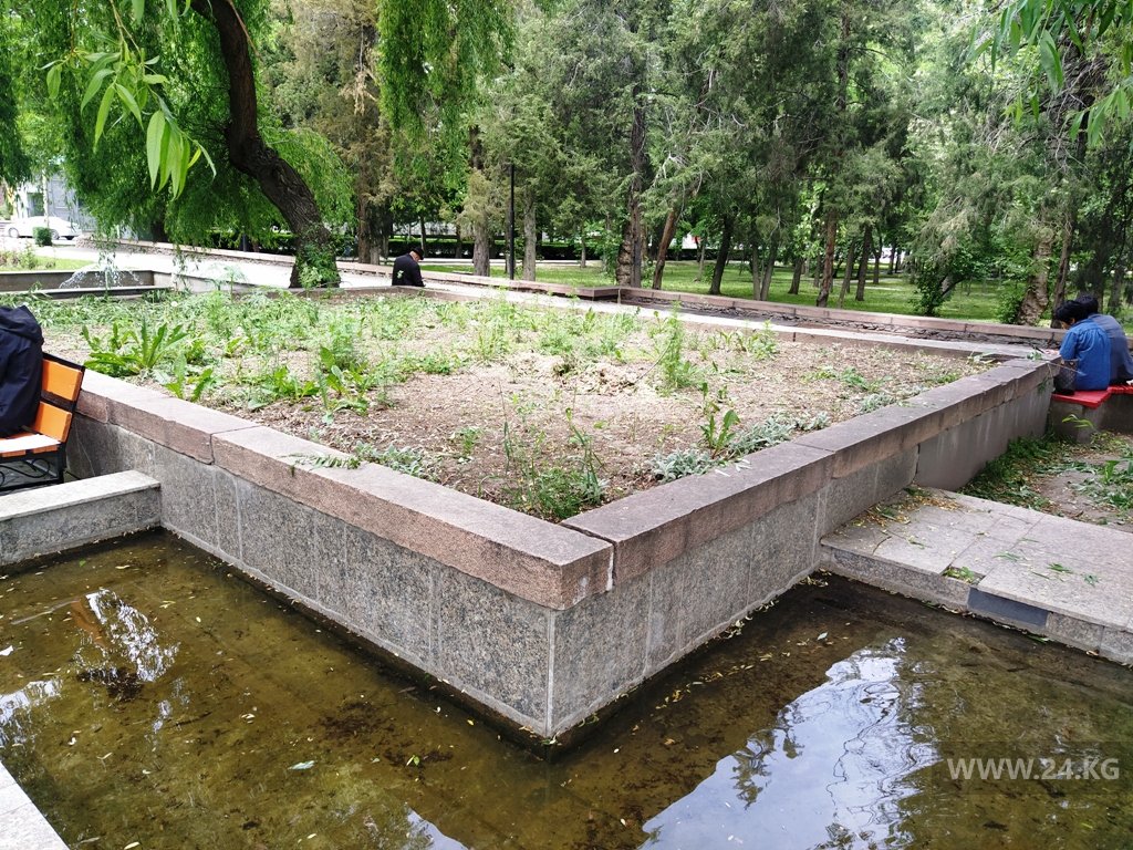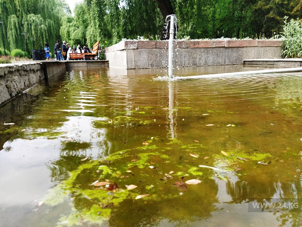 Майские субботники и уборка накопившейся за зиму в Бишкеке грязи давно закончились. Но внутри фонтаны никто так и не почистил. С наступлением тепла они уже успели зарасти тиной.