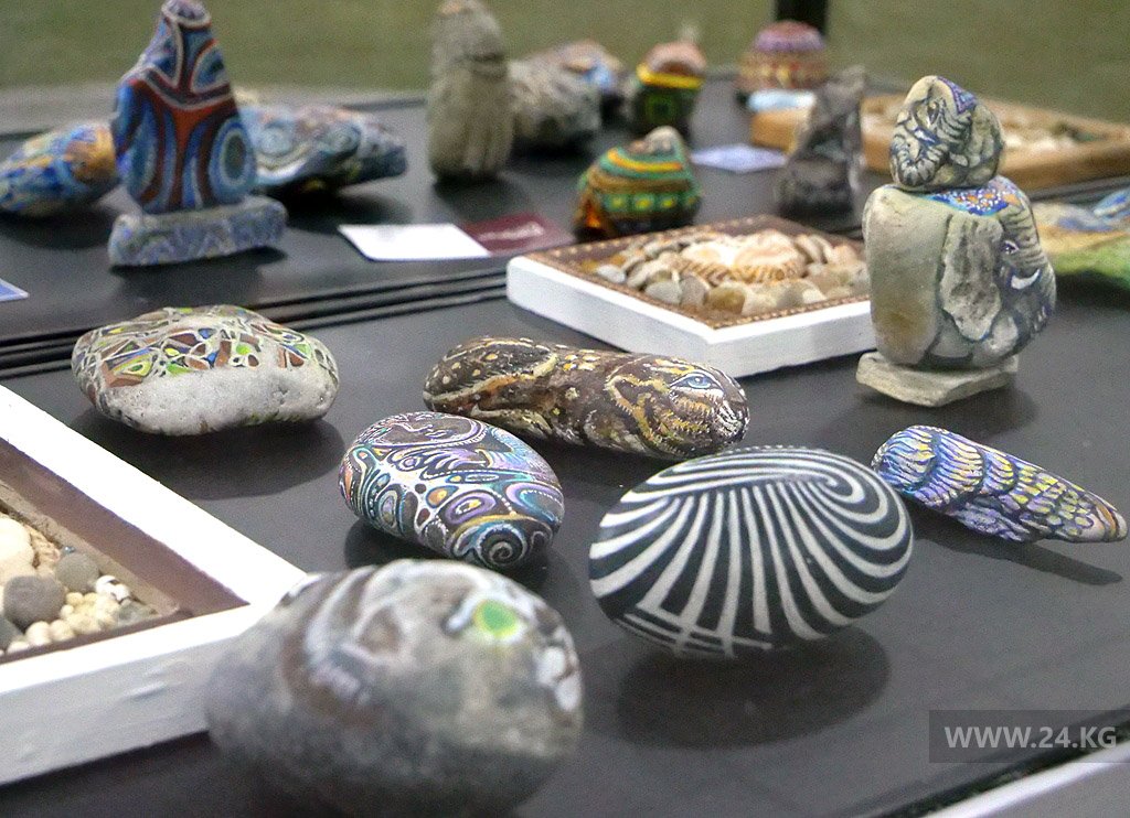 Больше 20 лет Марина Громова расписывает камни, которые в ее руках превращаются в произведения искусства. «Мне бы зал побольше, показала бы всем крупные камни», — сказала она, когда кто-то из посетителей спросил у нее про работы.