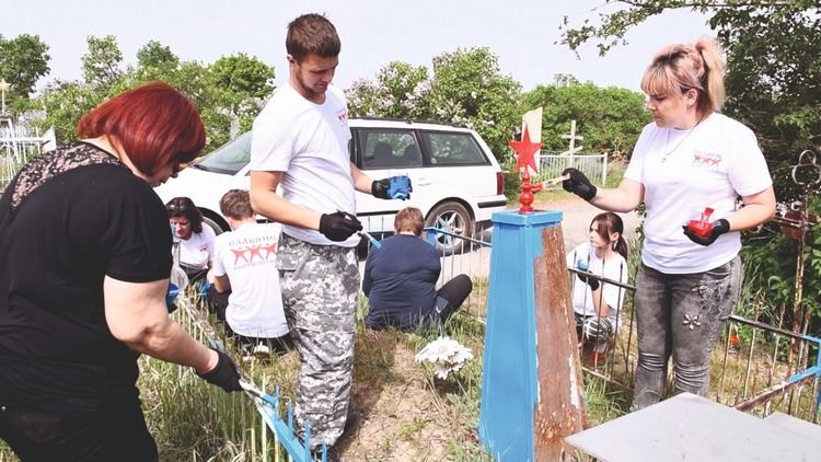 На кладбище активисты красили оградки и памятники, убирали с могил заросшую траву и мусор.