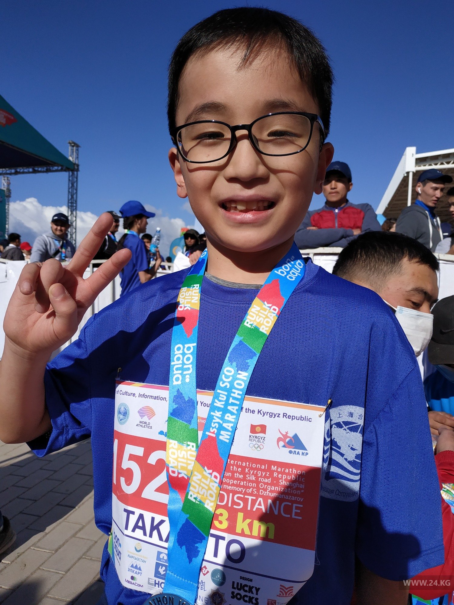 Сразу после забега нам удалось поговорить с самым юным участником соревнований. Им оказался 9-летний представитель Японии. Оказалось, что родители Тарохито работают в Кыргызстане. «В таком мероприятии я участвую впервые. Сначала волновался, а потом всю дистанцию прошел с хорошим настроением», — говорит мальчик.