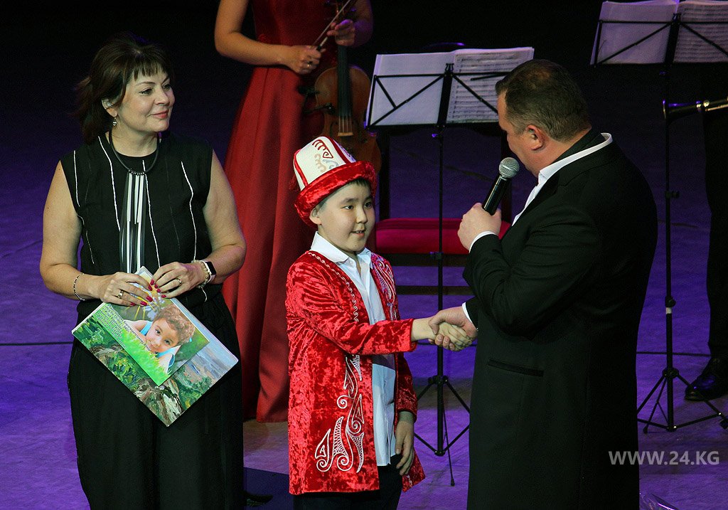 Игорь Воронцов после того, как вручил конверт с деньгами и небольшую картину Оксаны Васильевой, пообещал спеть с мальчиком дуэтом через год. Бекбол Жузубалиев исполнил куплет любимой песни и пожелал всем самого главного — здоровья.