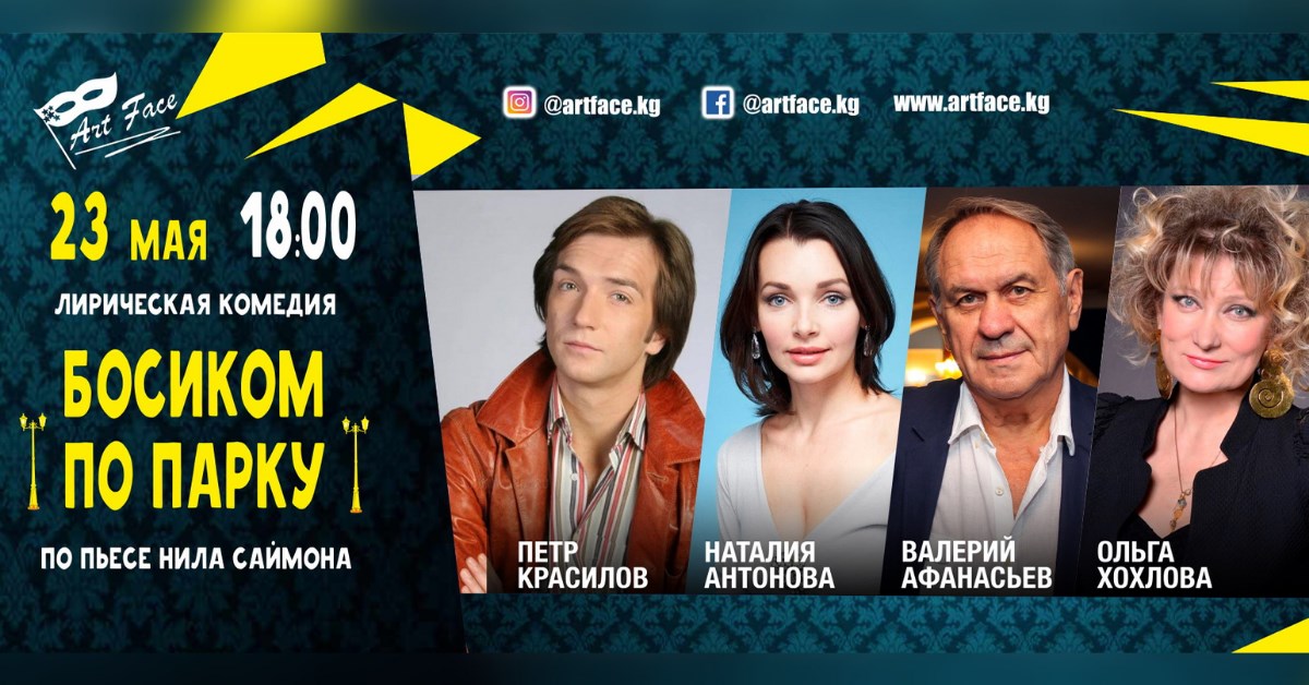 В Бишкеке выступят популярные российские артисты Валерий Афанасьев, Ольга Хохлова, Наталия Антонова и Петр Красилов. Бессмертная лирическая комедия Нила Саймона расскажет вам историю о юных молодоженах, которые учатся преодолевать многочисленные испытания, сохраняя в сердце любовь друг к другу.