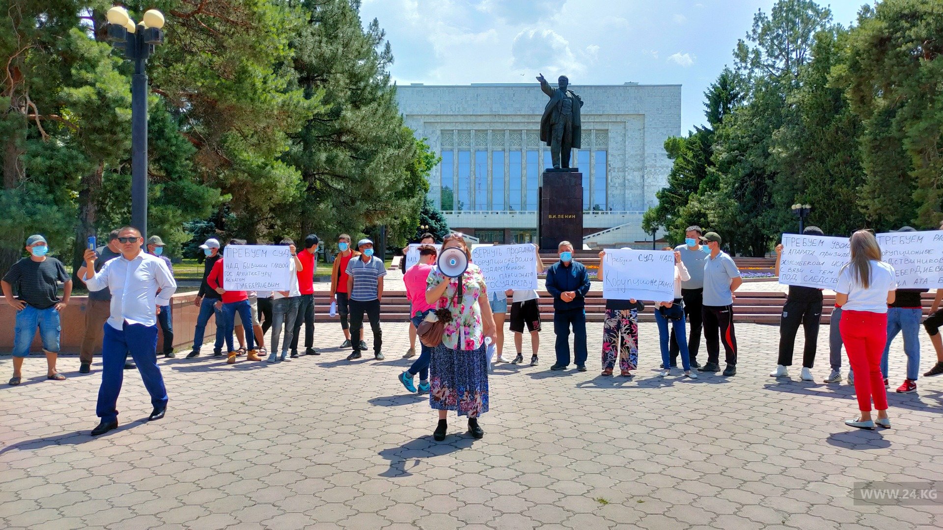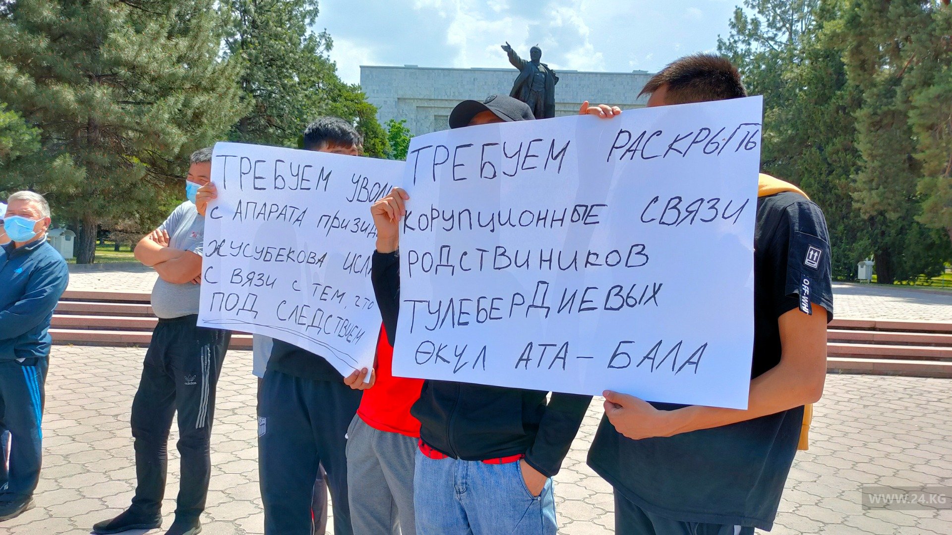 Около 20 человек требуют от властей вернуть проданные коррупционерами государственные земли и пансионаты.