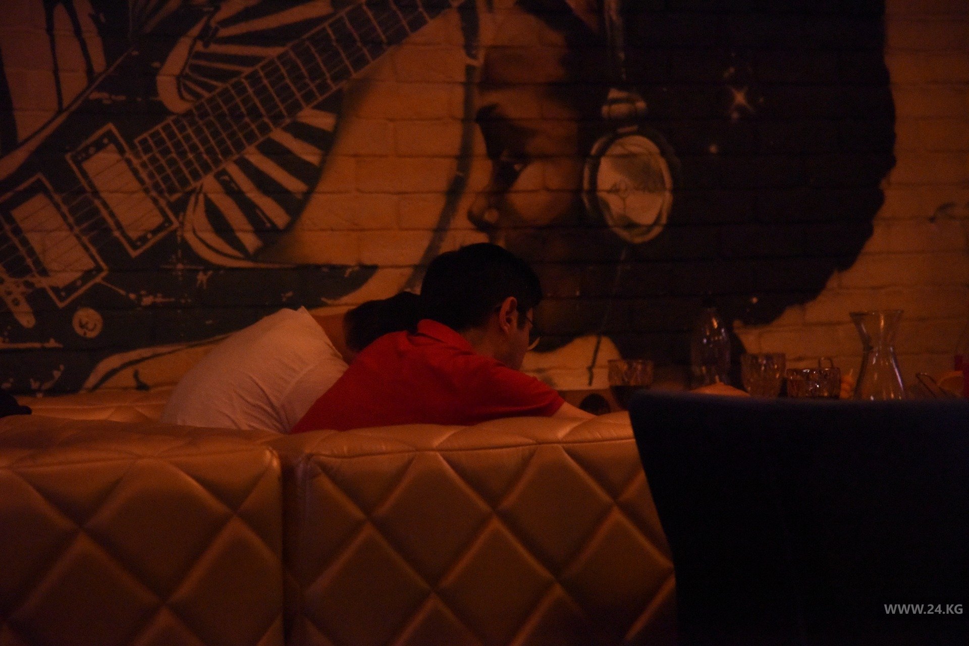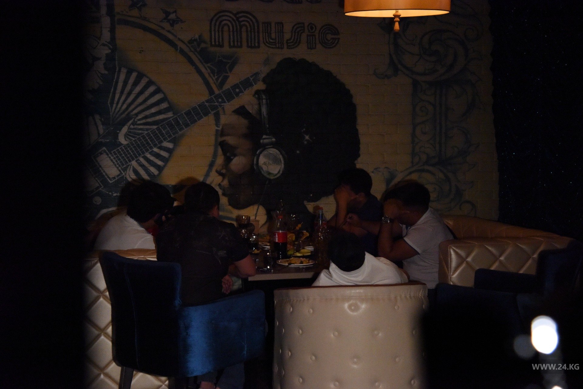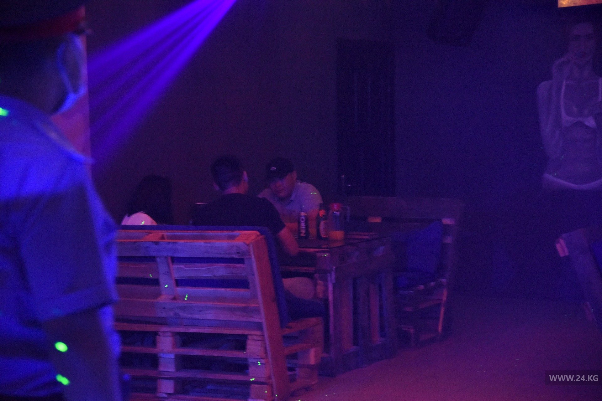 Напротив караоке находится кафе «Сария». Как сообщил его охранник, заведение закрыто с 23.00. Он также любезно согласился показать инспекции и журналистам, что происходит внутри. Действительно залы оказались пустые, клиентов не было. Инспекторы подытожили, что здесь соблюдают постановление мэрии.