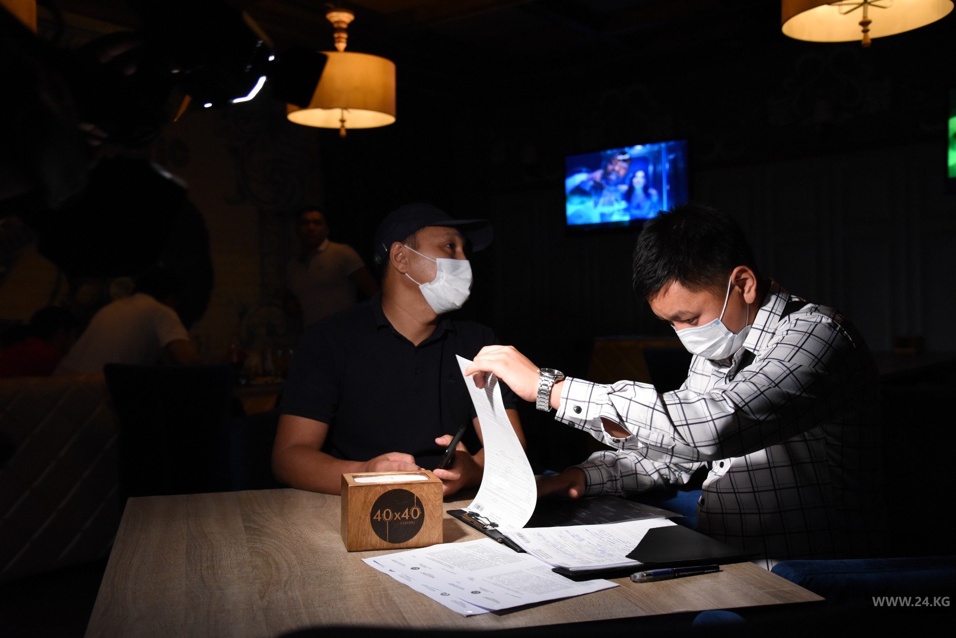 Следующая точка — ночной караоке-бар «40×40». Владельцы поступили хитро — освещения как снаружи, так и внутри не было, а дверь оказалась заперта. Через некоторое время вышла администратор и сообщила, что они закрыты. Однако в нескольких залах располагались до 40 гостей. Увидев журналистов, они стали покидать помещение.