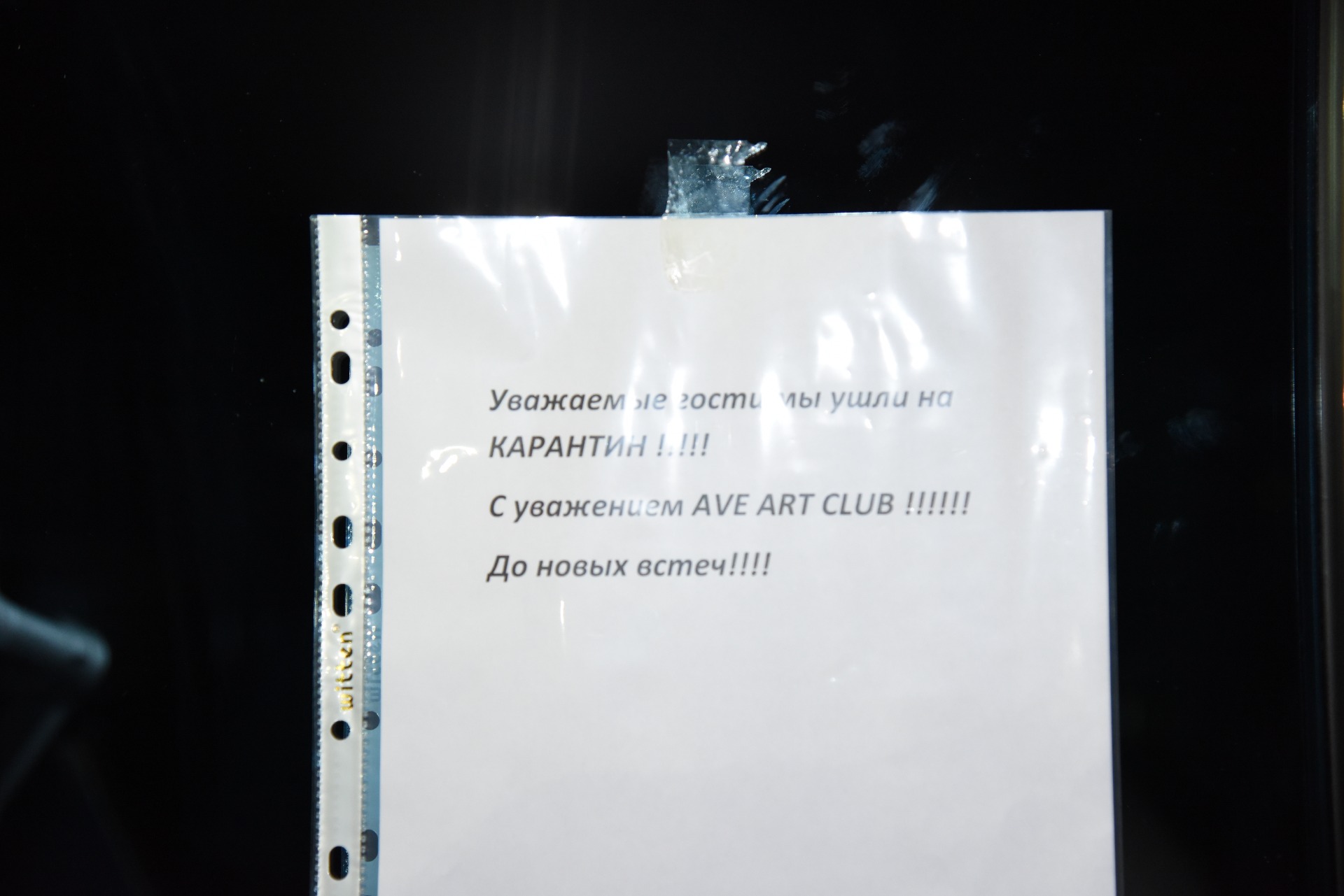 Аналогичная ситуация и с ночным клубом AVE. На дверях висит объявление: «Уважаемые гости, мы ушли на карантин. До новых встреч!».