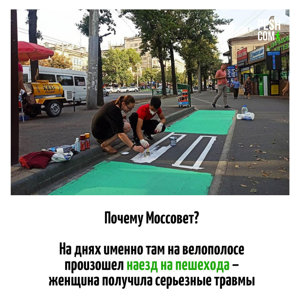 «По ПДД велосипедистам запрещено ездить по дороге, если есть велодорожка. Это значит, что конфликтные ситуации и происшествия на совмещенной велополосе с тротуаром будут продолжаться. Чтобы этого не было, нужны правильные обособленные велодорожки, но пока их нет. Сегодня можно выделить велополосы другим цветом, как сделали это мы. Такой опыт используется во всем мире. Мы надеемся, что мэрия Бишкека поддержит нашу инициативу», — заявили в движении.