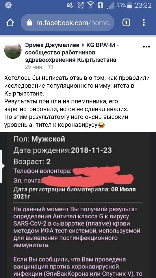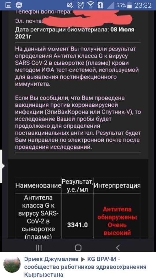 Кыргызстанцы делятся в соцсетях результатами исследования на коллективный иммунитет. У одних уровень антител высокий, у вторых — низкий, а у третьих их вовсе не обнаружено даже после получения двух компонентов вакцины. Пользователи Сети нашли это странным.