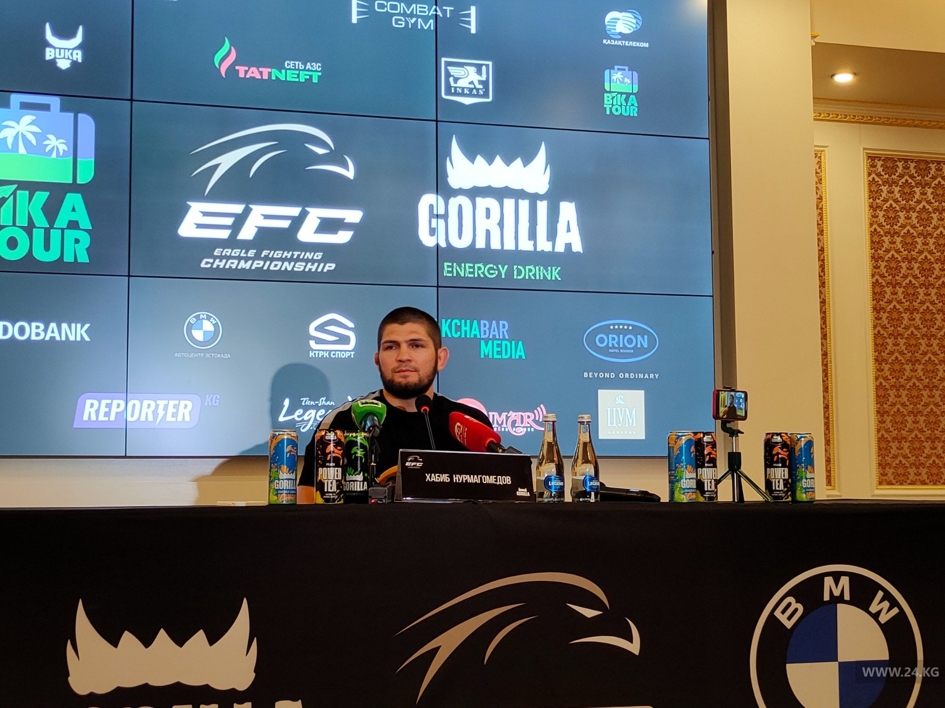 Хабиб Нурмагомедов опроверг слухи о том, что он приехал в Кыргызстан в честь дня рождения криминального авторитета Камчы Кольбаева. Об этом на пресс-конференции в Бишкеке сообщил сам боец.