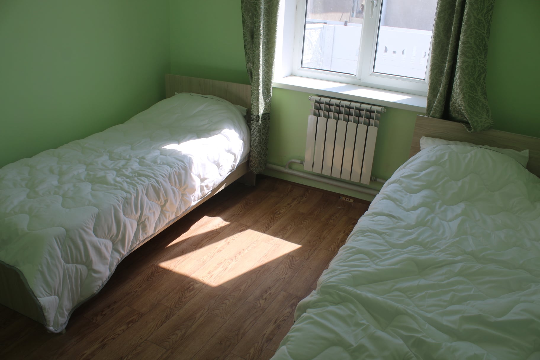 В городке трехкомнатные дома с отдельной душевой и печью. Они оснащены необходимой мебелью, стиральными машинами и газовыми плитами. Снаружи огорожены забором.