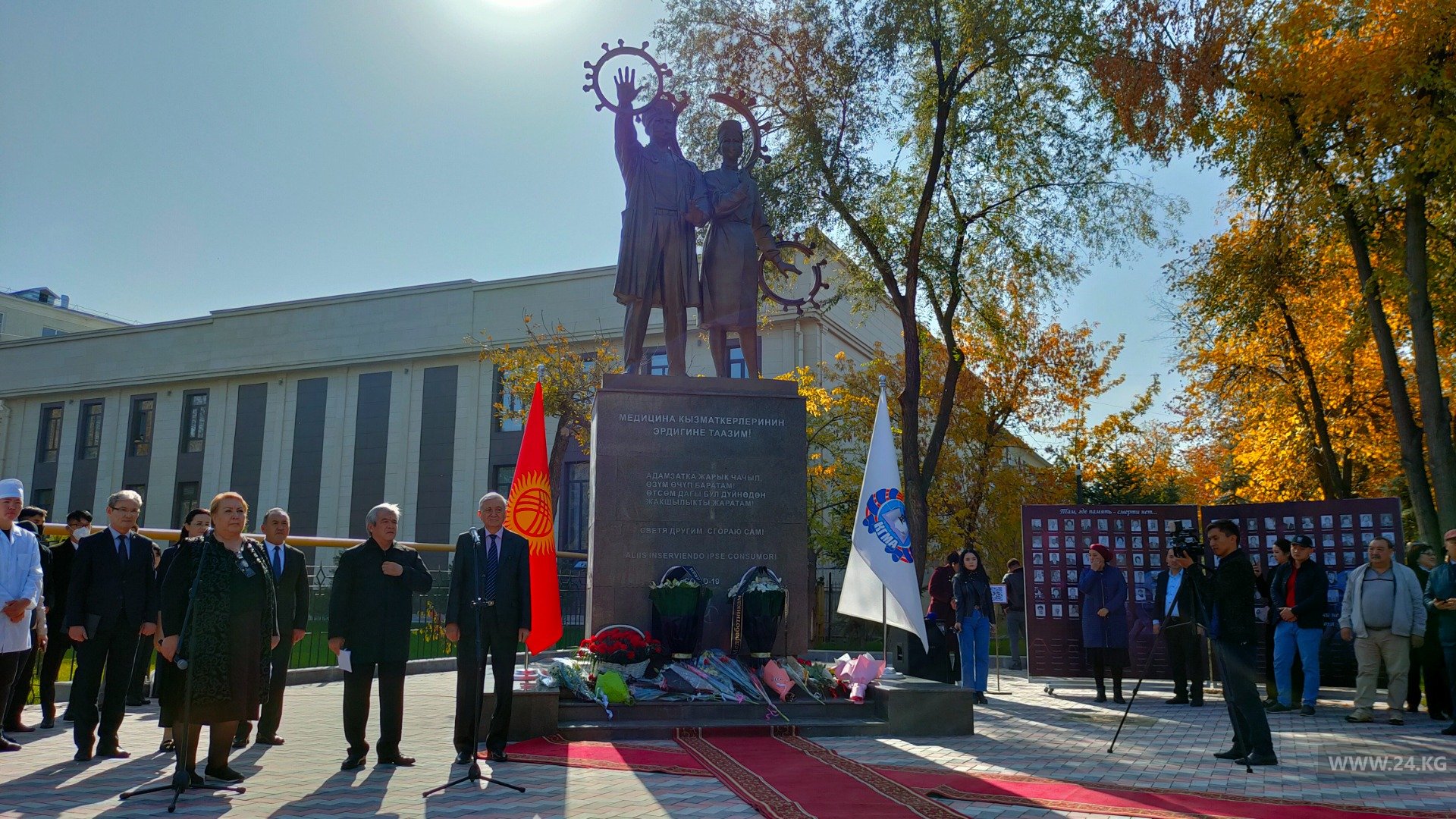 В Бишкеке возле Кыргызской государственной медицинской академии имени Исы Ахунбаева открыли памятник медикам, погибшим в пандемию коронавируса.