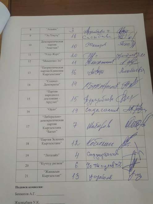 Центральная комиссия по выборам и проведению референдумов провела жеребьевку среди политических партий, баллотирующихся по единому избирательному округу, для определения очередности включения их в избирательный бюллетень.