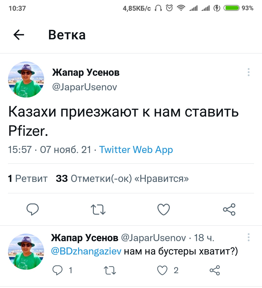 Отметим, что в соцсети Twitter появились сообщения о том, что иностранцы (в частности казахстанцы) приезжают в нашу республику, чтобы вакцинироваться Pfizer.