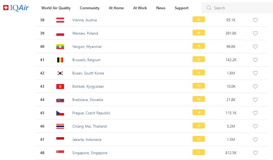 В рейтинге крупнейших городов мира по качеству воздуха World Air Quality Бишкек находится на 43-м месте.