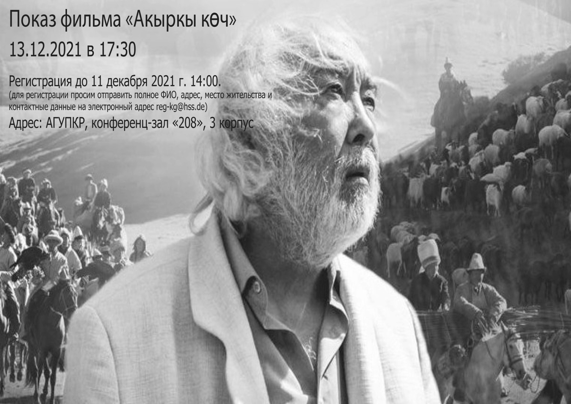 На показ придут режиссеры Бакыт Мукул уулу и Дастан Жапар уулу и актер фильма Бусурман Одуракаев. Регистрация по электронной почте [email protected].