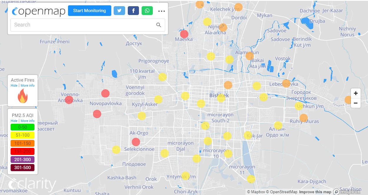 В рейтинге крупнейших городов мира по качеству воздуха World Air Quality Бишкек опустился на 32-е место.