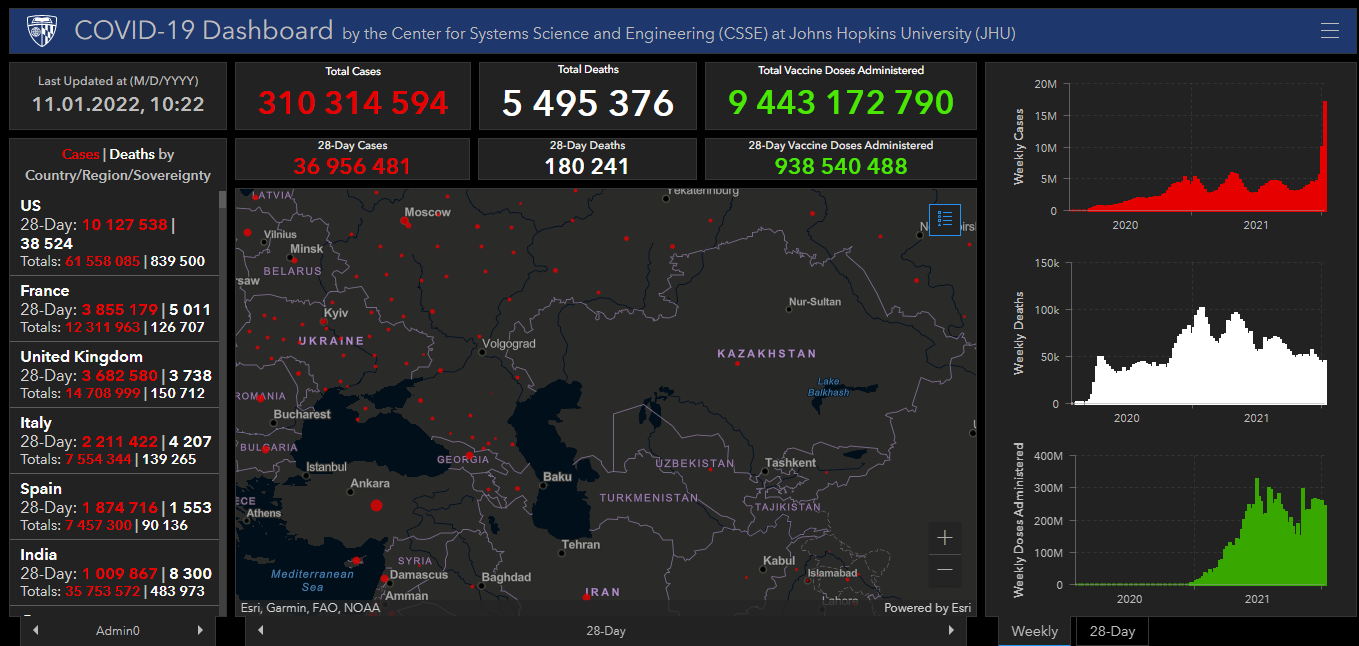 COVID-19 в мире. Заразились более 310,3 миллиона, умерли более 5,4 миллиона