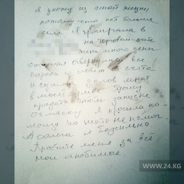 Повезло. Из петли ее вытащил супруг, почувствовав неладное. Предсмертная записка осталась страшным напоминанием о пережитом.