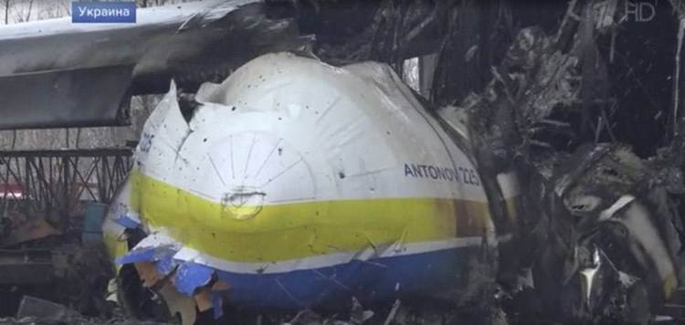 — Первый канал показал репортаж из аэропорта Гостомель под Киевом, где уничтожили Ан-225 («Мрия») — самый большой самолет в мире.