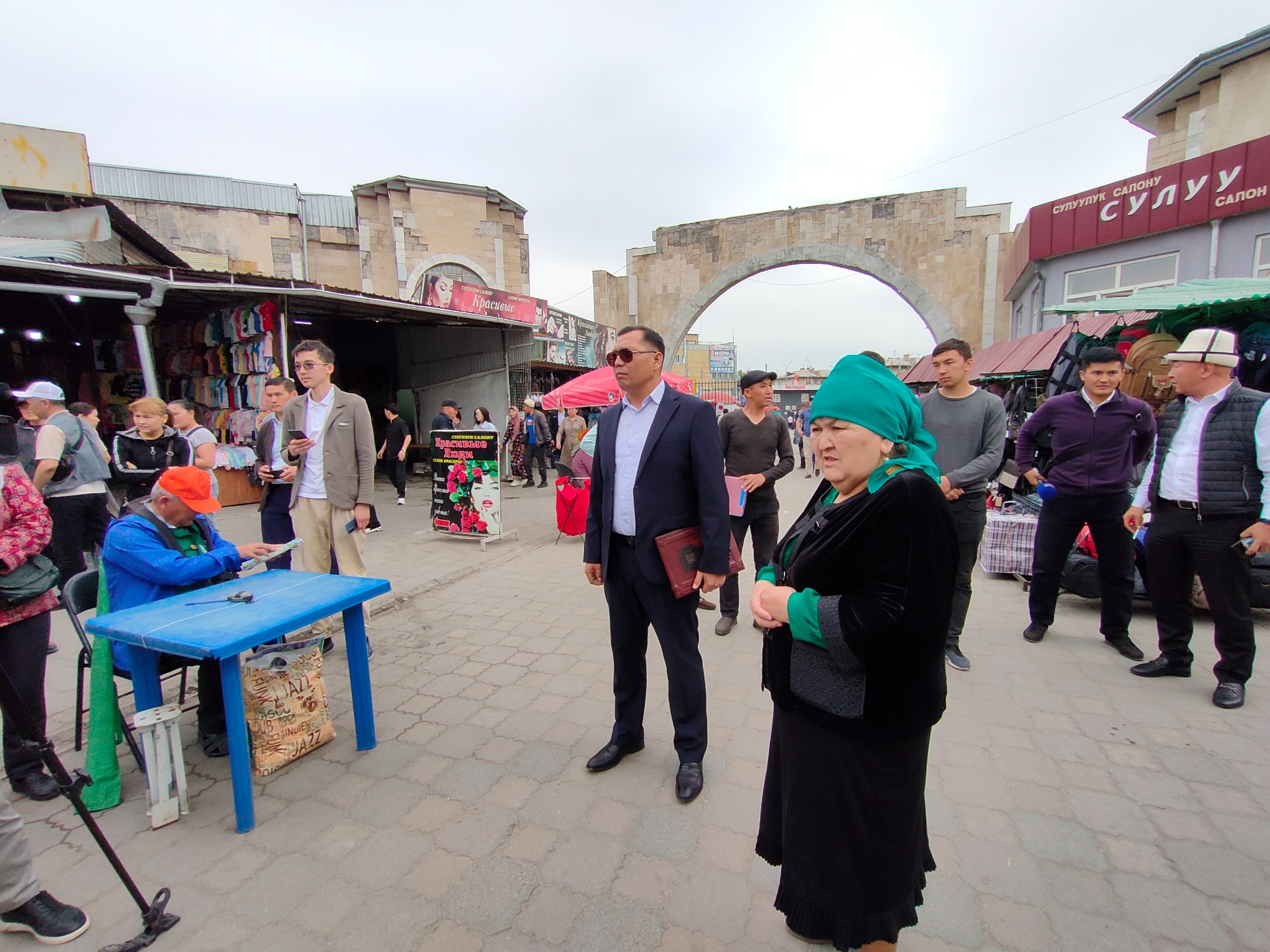 Глава Ленинского района Бишкека Русланбек Тагаев встретился с торговцами Ошского рынка, чтобы обсудить ликвидацию стихийной торговли и предоставление им мест внутри рынка.