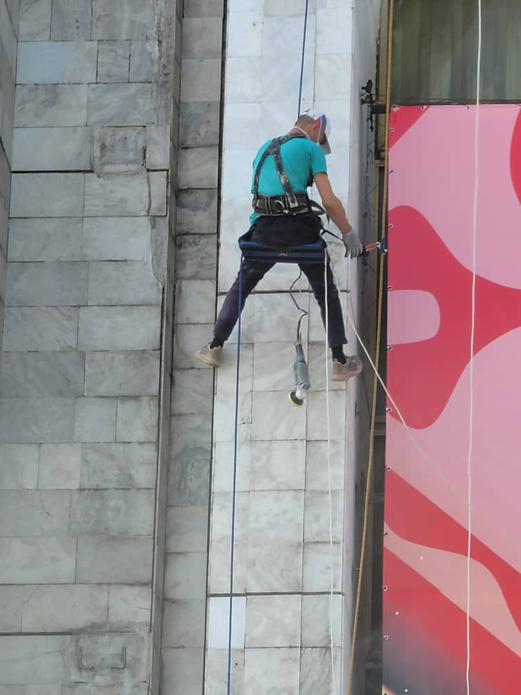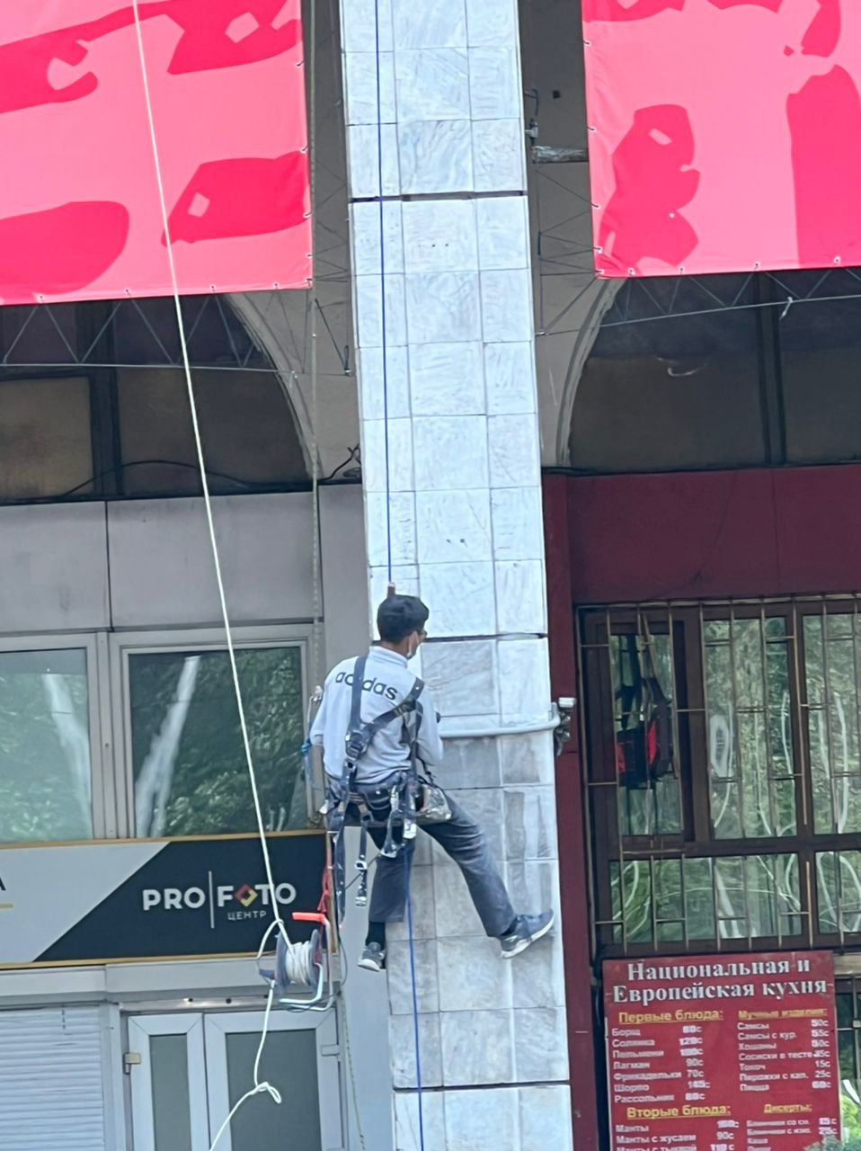 В Бишкеке очищают мраморный фасад здания «Илбирс». Об этом сообщила пресс-служба столичного муниципалитета.